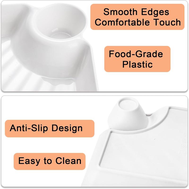10 Count Chips and Dip Plates, Plastic Serving Platter Set Dumpling Plate with Dipping Saucer, White Divided Snack Serving Dishes for Appetizer, Sushi, Taco Salsa, Charcuterie,