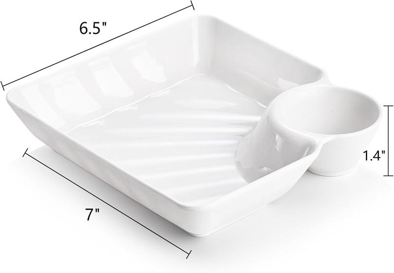 Package Include: You will receive 10 pack white chips and dip plates, each serving plate measures about 7" L x 6.5" W x 1.4" H, the size of them is for serving anything with a dipping sauce. Sufficient quantity can satisfy your daily use them to accommodate different kinds of foods.