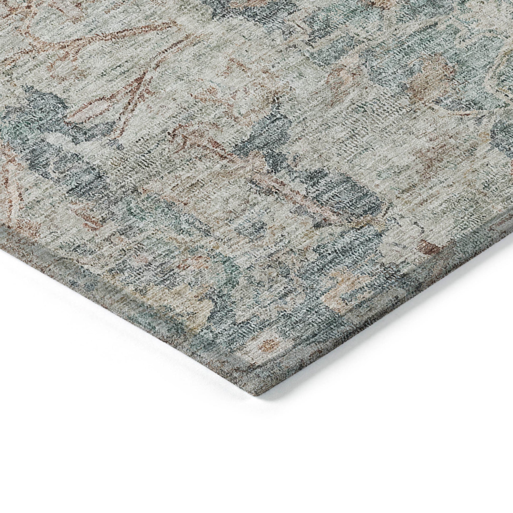 3' X 5' Green Blue And Gray Oriental Washable Indoor Outdoor Area Rug