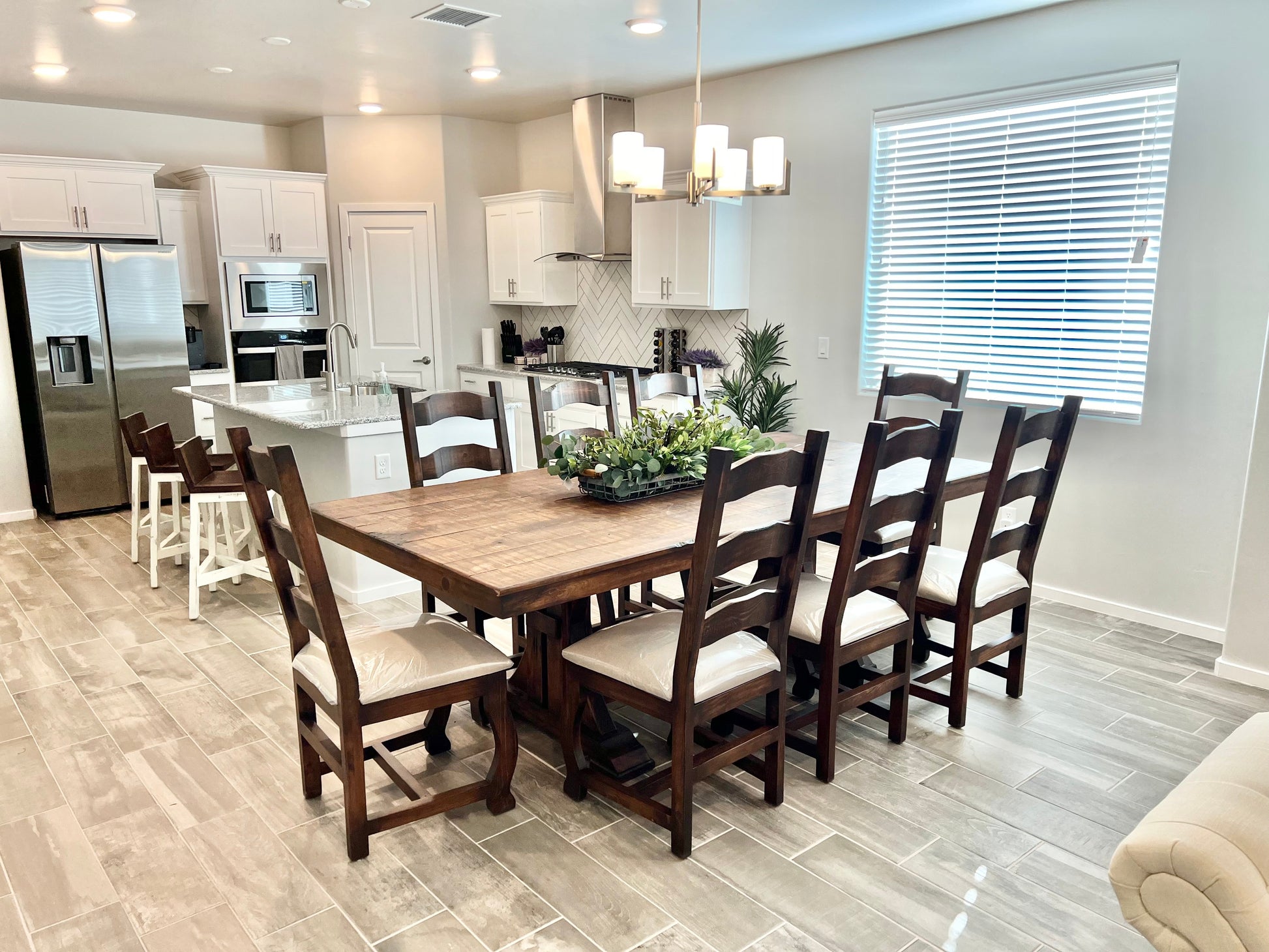Featuring rustic marks in the wood, the Floresville 8' Dining Table exudes rustic charm while maintaining an elegant presence. It accommodates up to 8 chairs comfortably, making it perfect for hosting family dinners or professional meetings.