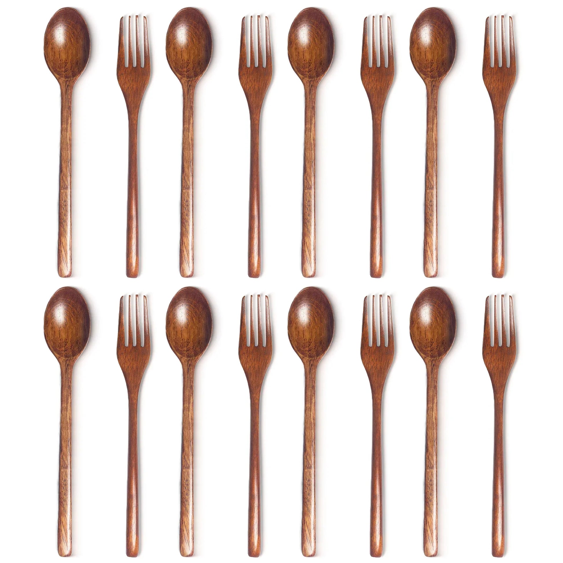 8-Piece Eco-Friendly Wooden Spoon and Fork Set, Natural Wood Cutlery