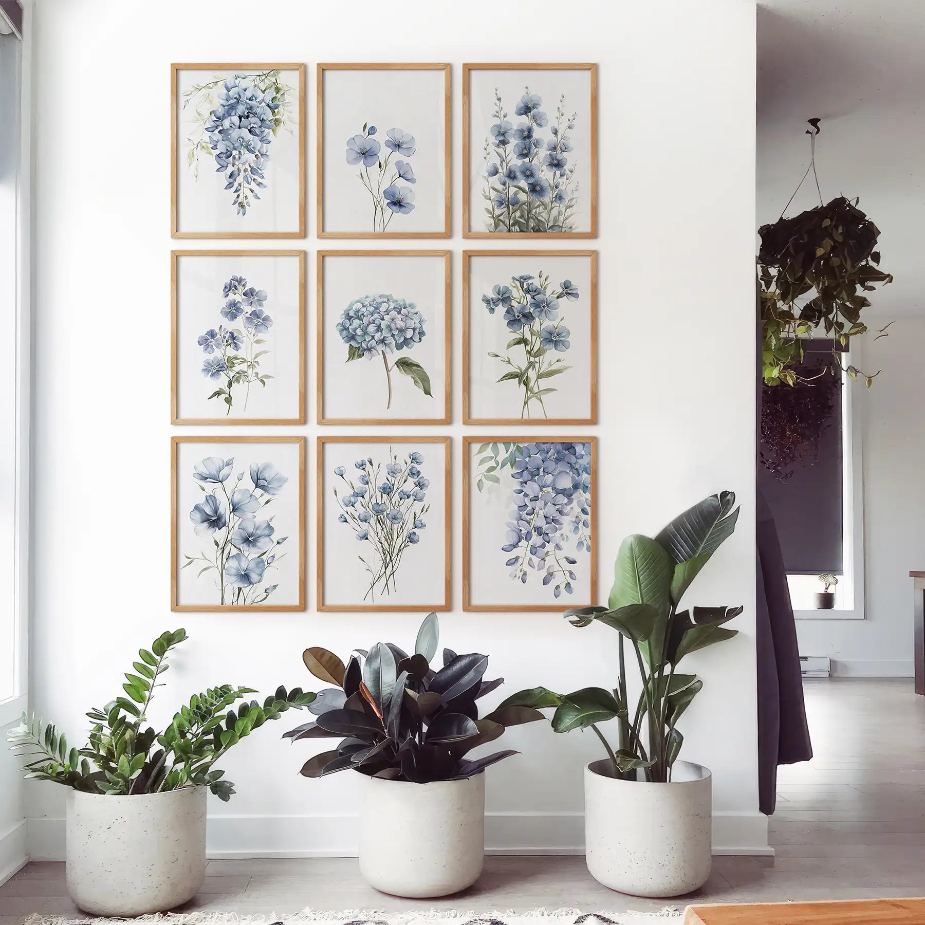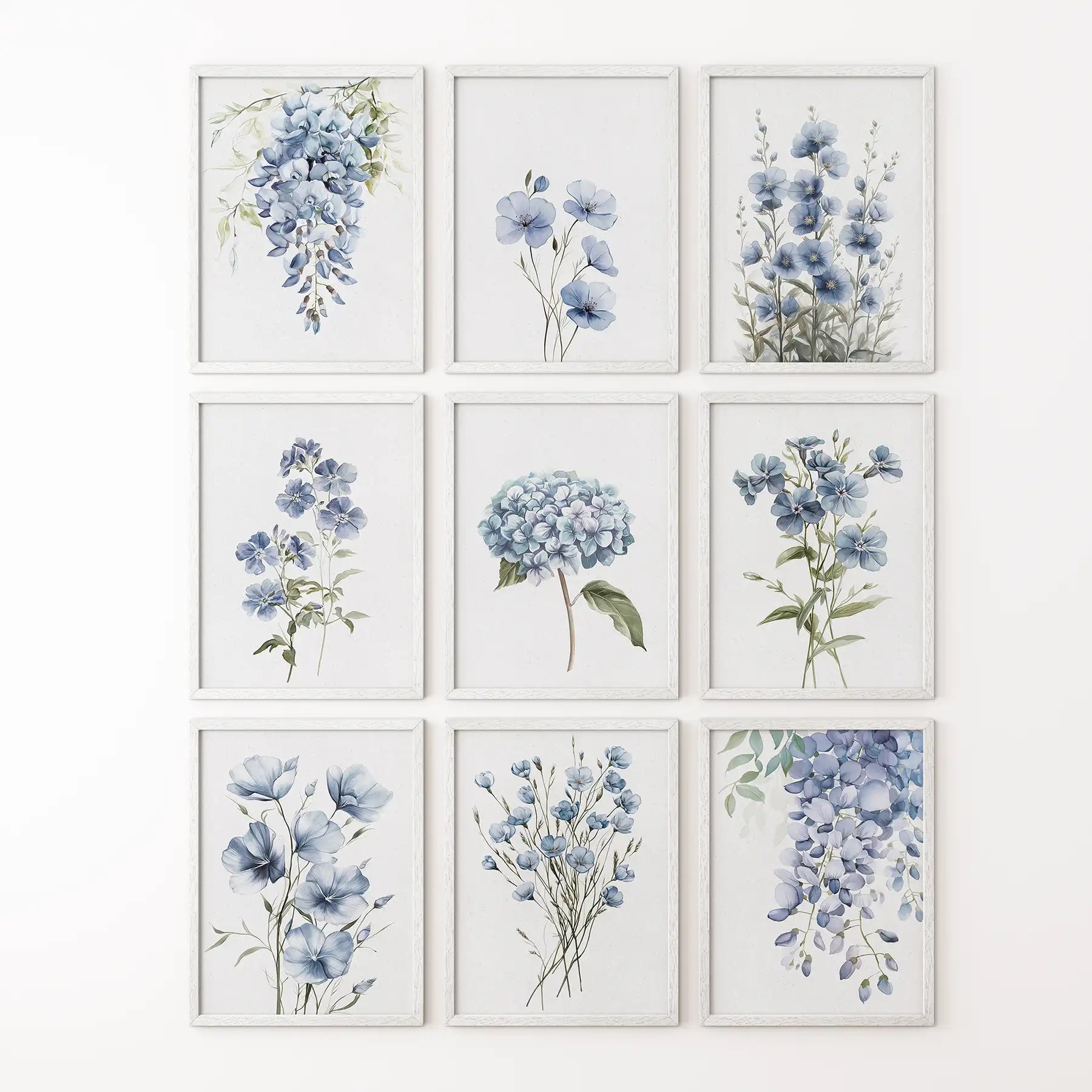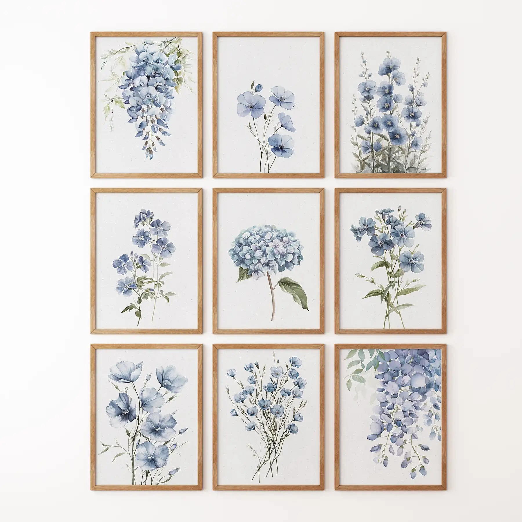 9 Piece Wall Art Decor. Blue Hydrangea Floral Posters