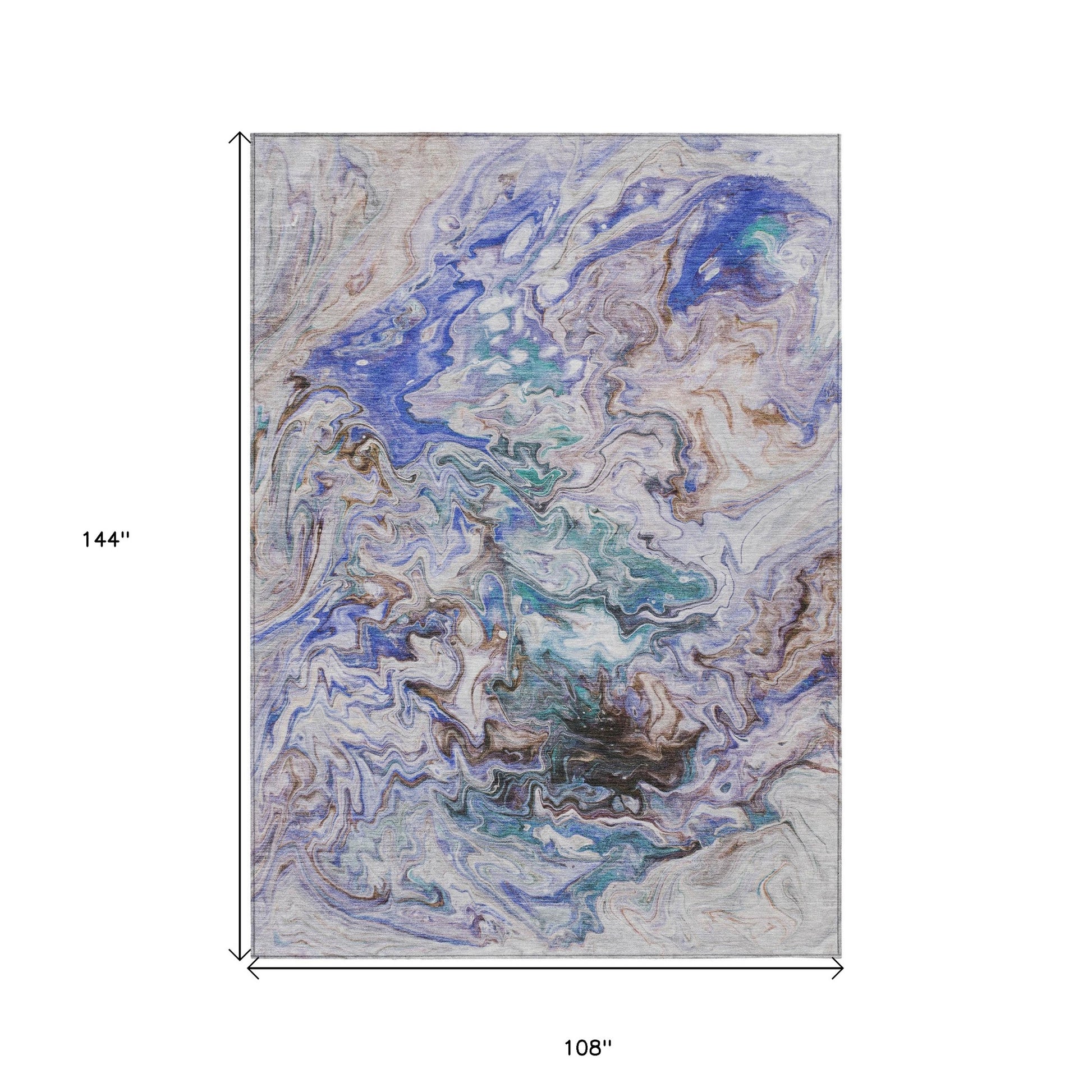 9' X 12' Beige Blue And Taupe Abstract Washable Indoor Outdoor Area Rug
