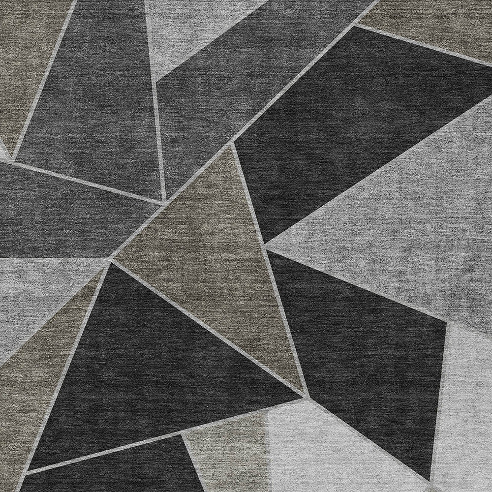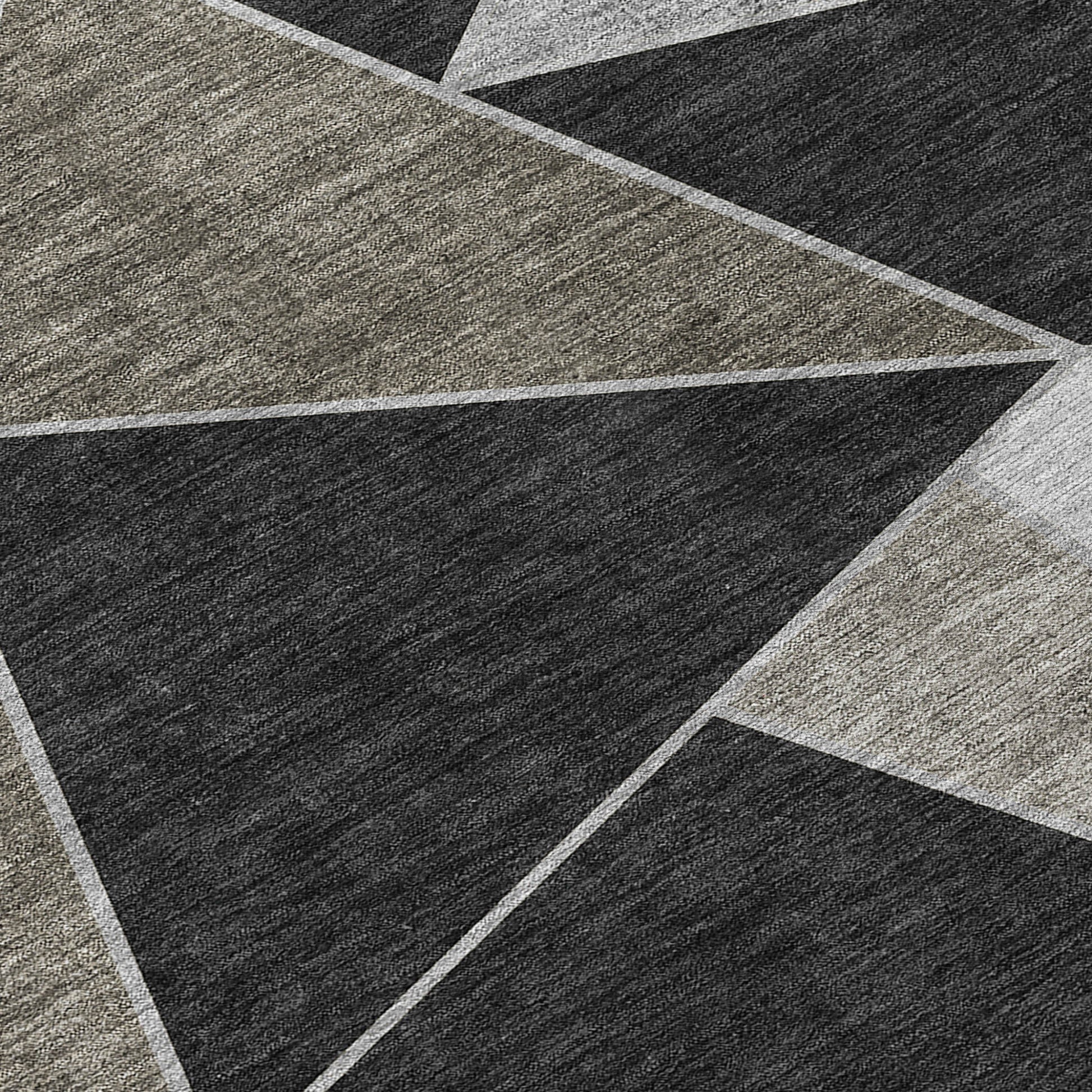 9' X 12' Coffee Charcoal And Gray Geometric Washable Indoor Outdoor Area Rug