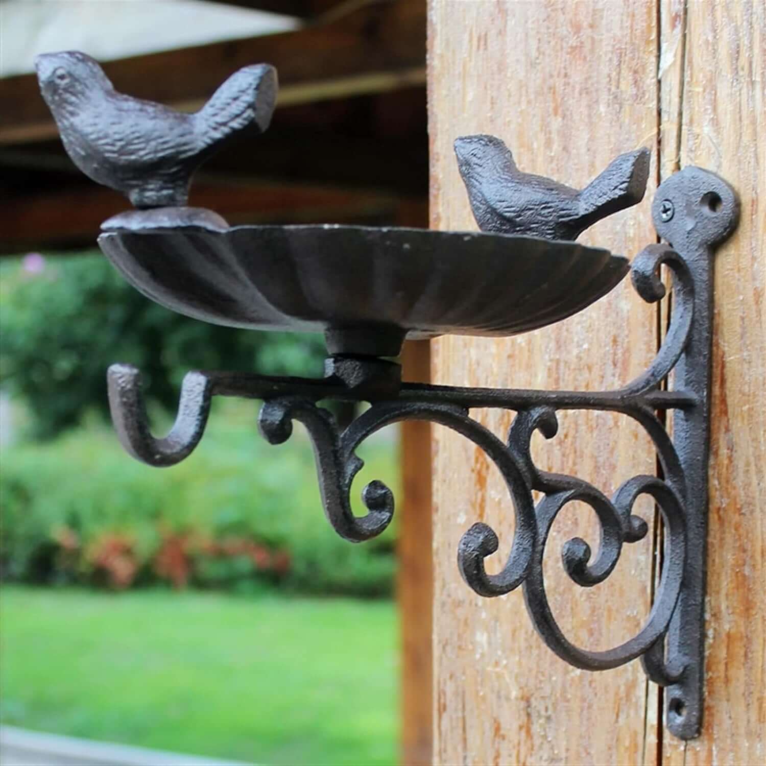 This antique-style wall-mounted bird feeder with birds can be placed on fences, porch posts, or exterior walls, where it invites real songbirds to dine beside their cast-iron companions. Below the feeder, twin hooks provide space to hang a small lantern, wind chime, or decorative garland—offering both beauty and versatility.