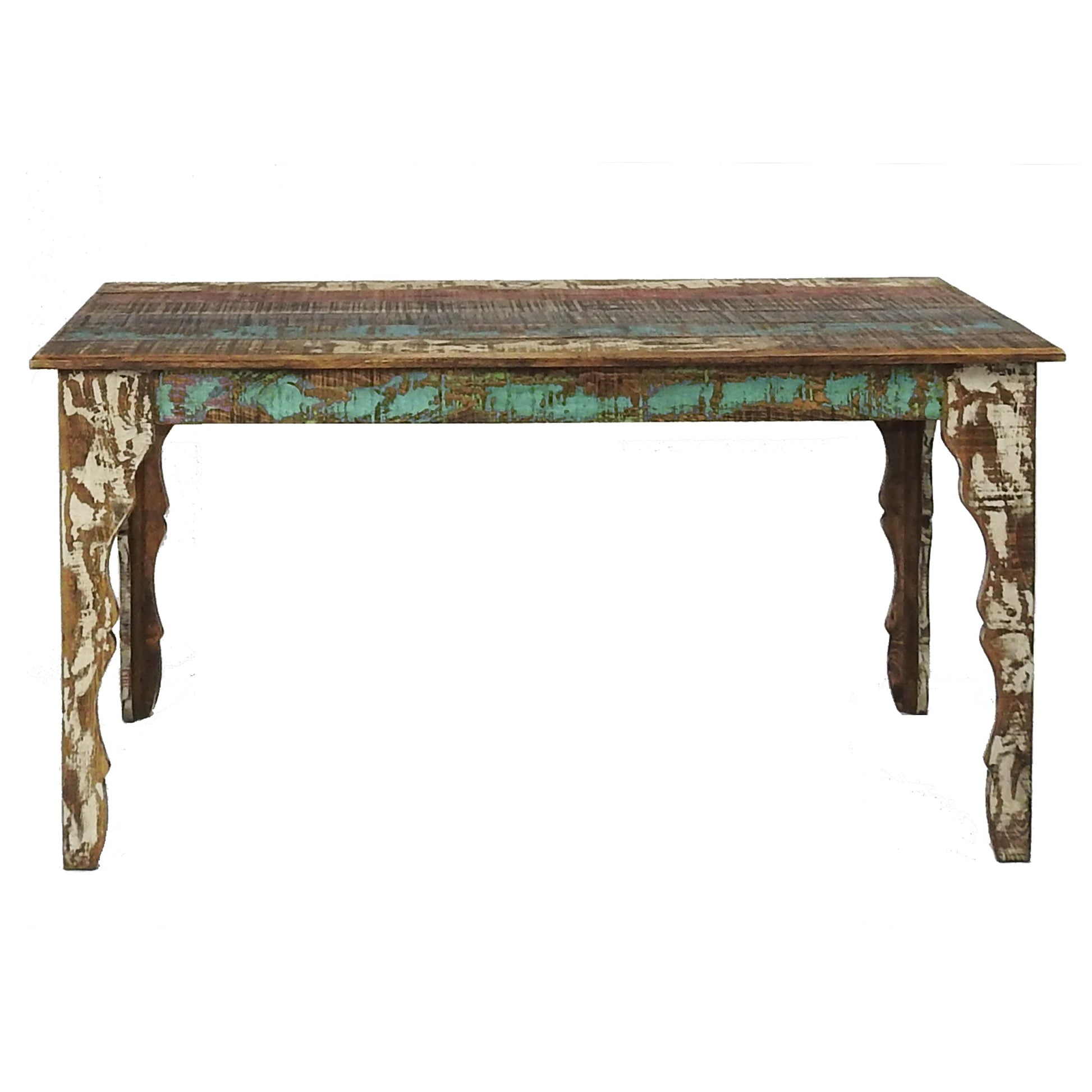 Finished in a multicolor palette with a protective dark wax finish, each table is unique, showcasing natural wood grains and enhancing its rustic charm. Whether in a farmhouse kitchen or a modern dining room, the Cabana Dining Table adds warmth and character to any setting.