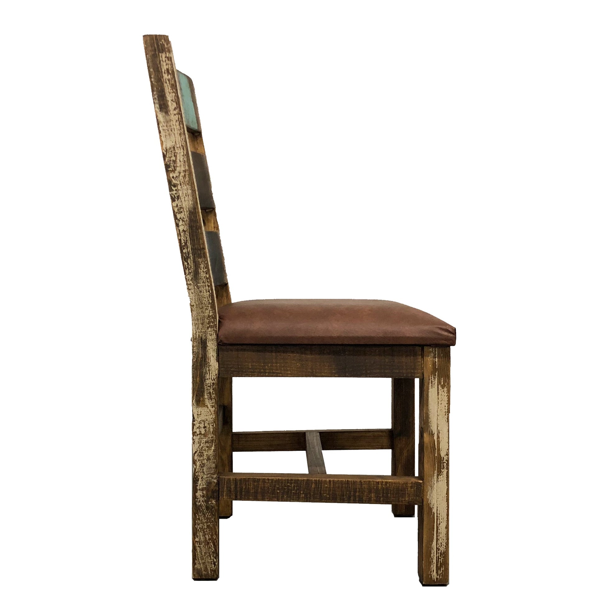Designed for both style and comfort, the Cabana Finca chair boasts a brown vinyl padded seat that offers a cozy seating experience. Whether used around a dining table or as an accent piece in a living room, its sturdy construction and rustic appeal make it a versatile addition to your home.