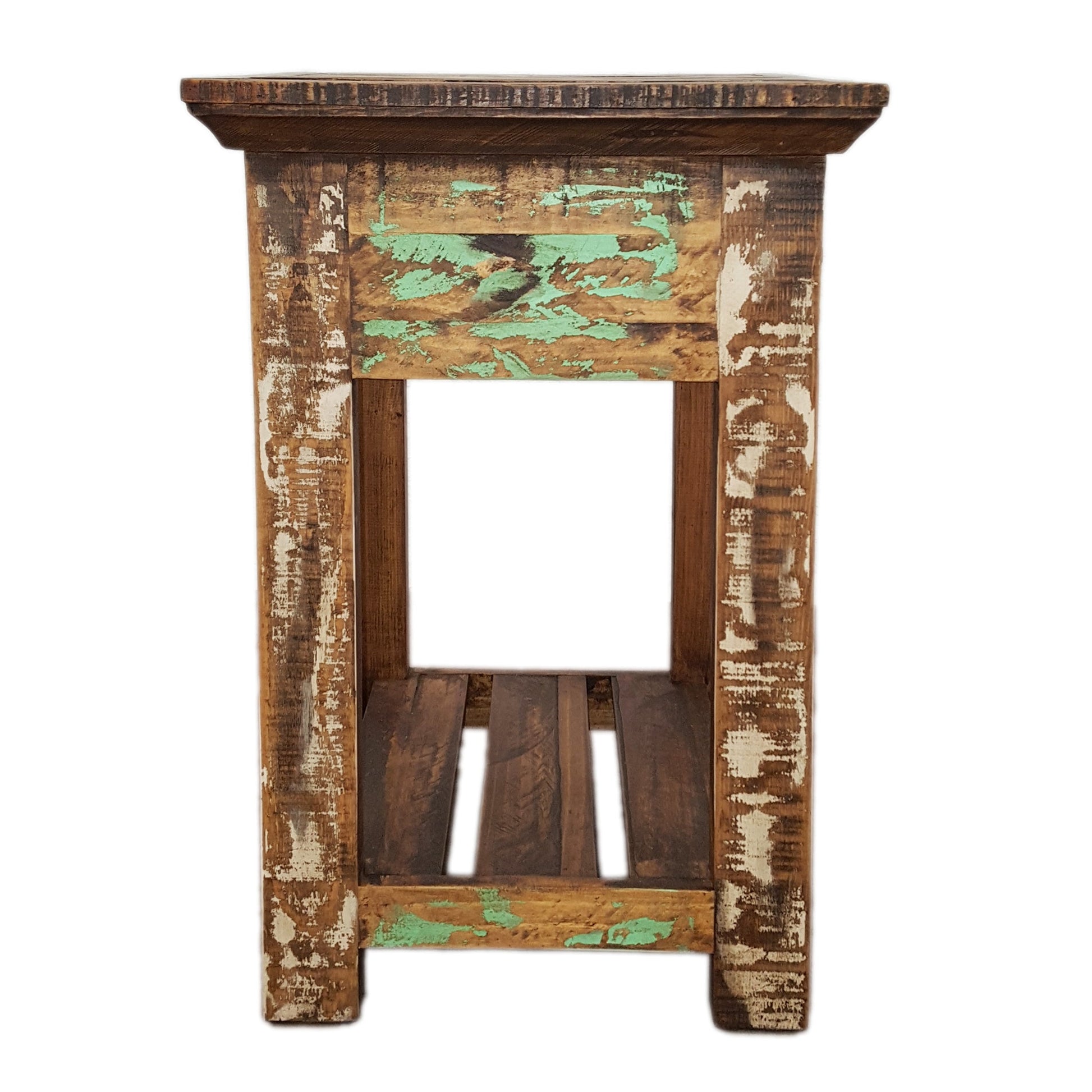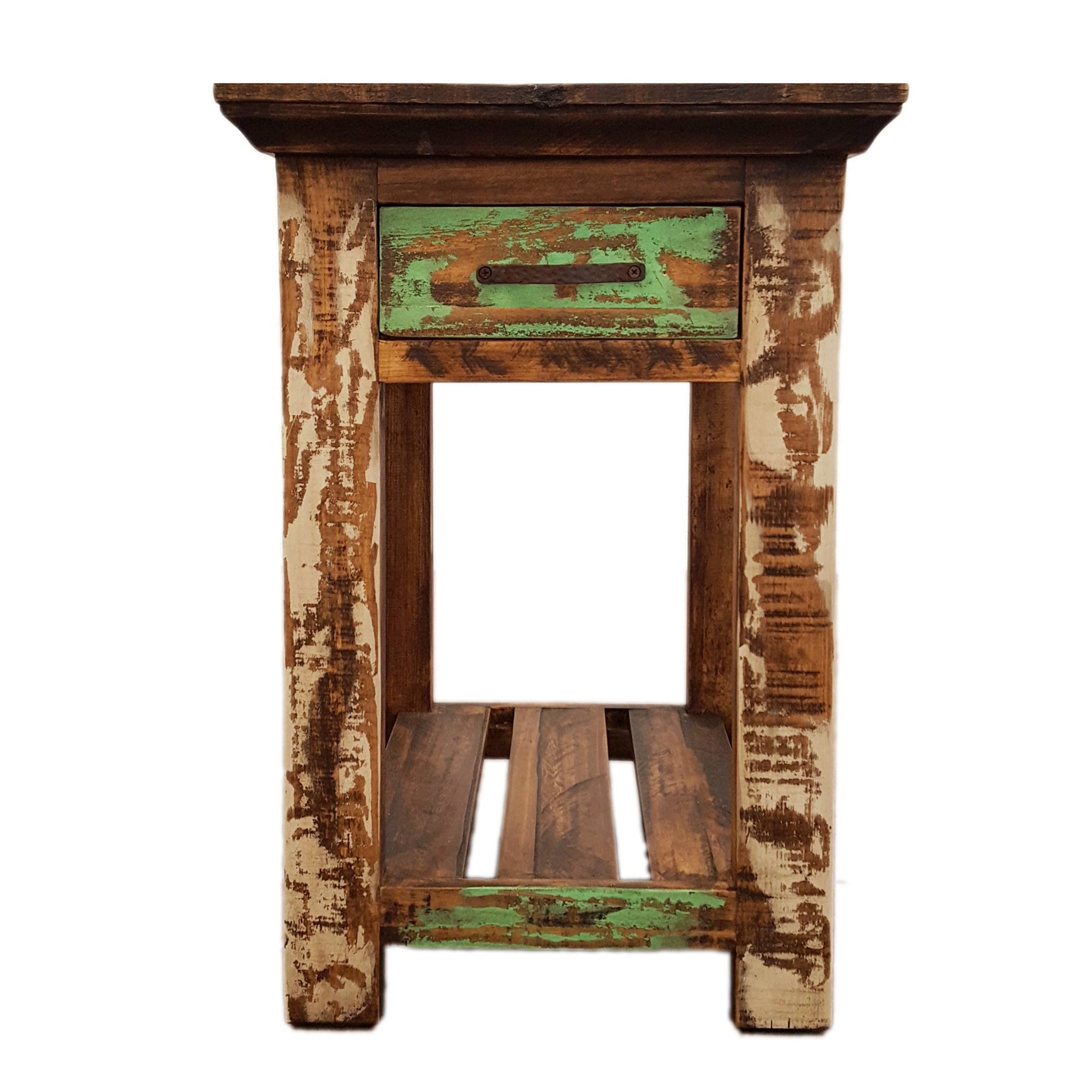 Add a touch of rustic charm to your living space with the Cabana Rustic End Table. Crafted from solid pine wood and adorned with a captivating multicolor finish and dark wax coating, this end table blends artisanal craftsmanship with practicality. Perfectly sized to complement any seating arrangement, it features a sturdy construction and a unique, weathered appearance that adds character to your décor. Whether used as a bedside companion or a sofa sidekick, the Cabana Rustic End Table offers both functionality and enduring style. Enhance your home with this versatile piece that seamlessly combines rustic allure with everyday convenience.
