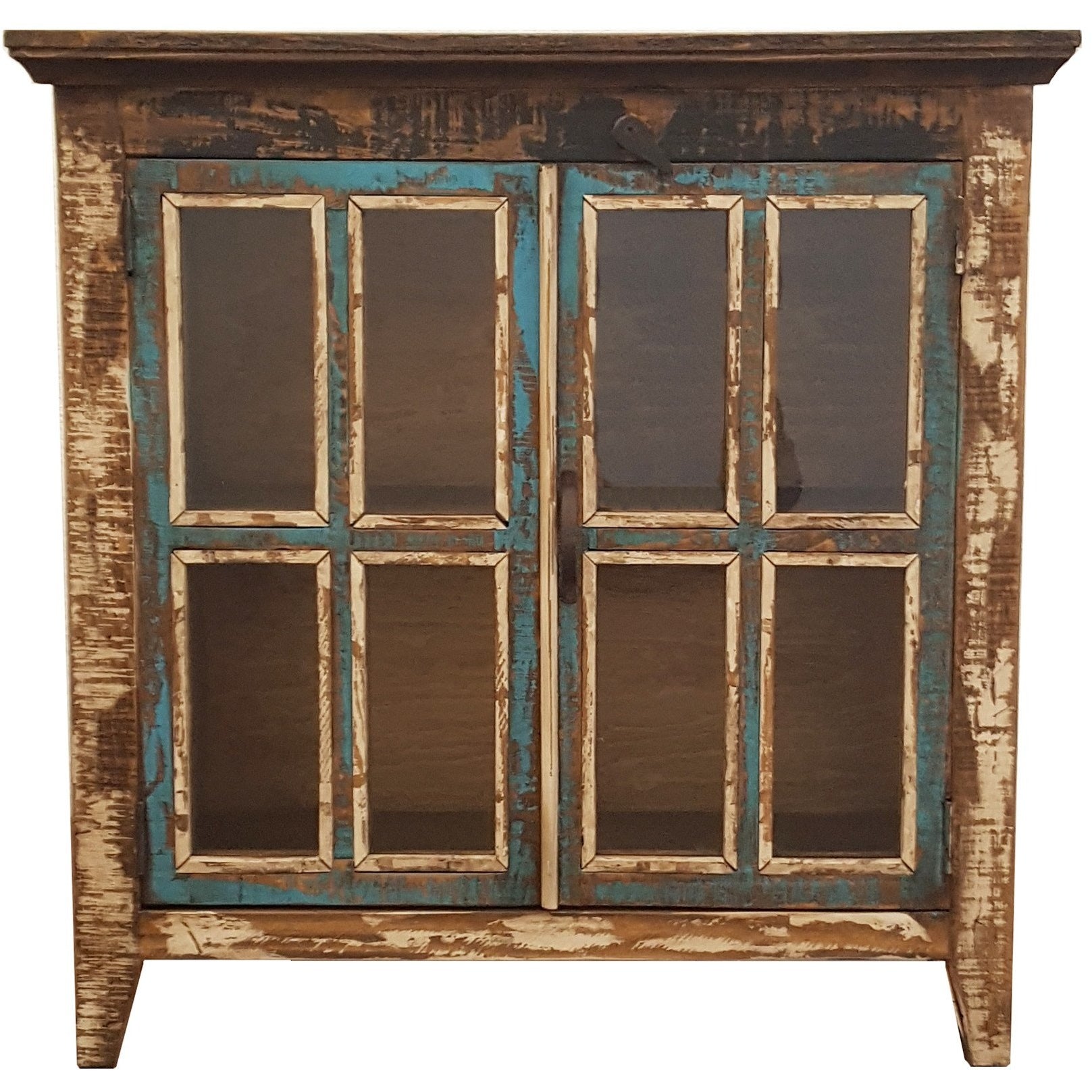 Transform your space with our Rustic Colorful Curio Cabinet, featuring two glass doors that add a charming accent to any room in your home. Ideal for the living room, dining room, hallway, bathroom, or bedroom, this versatile piece offers ample storage for collectibles, books, dishes, and more. It doubles as a stylish TV stand, blending functionality with rustic elegance.