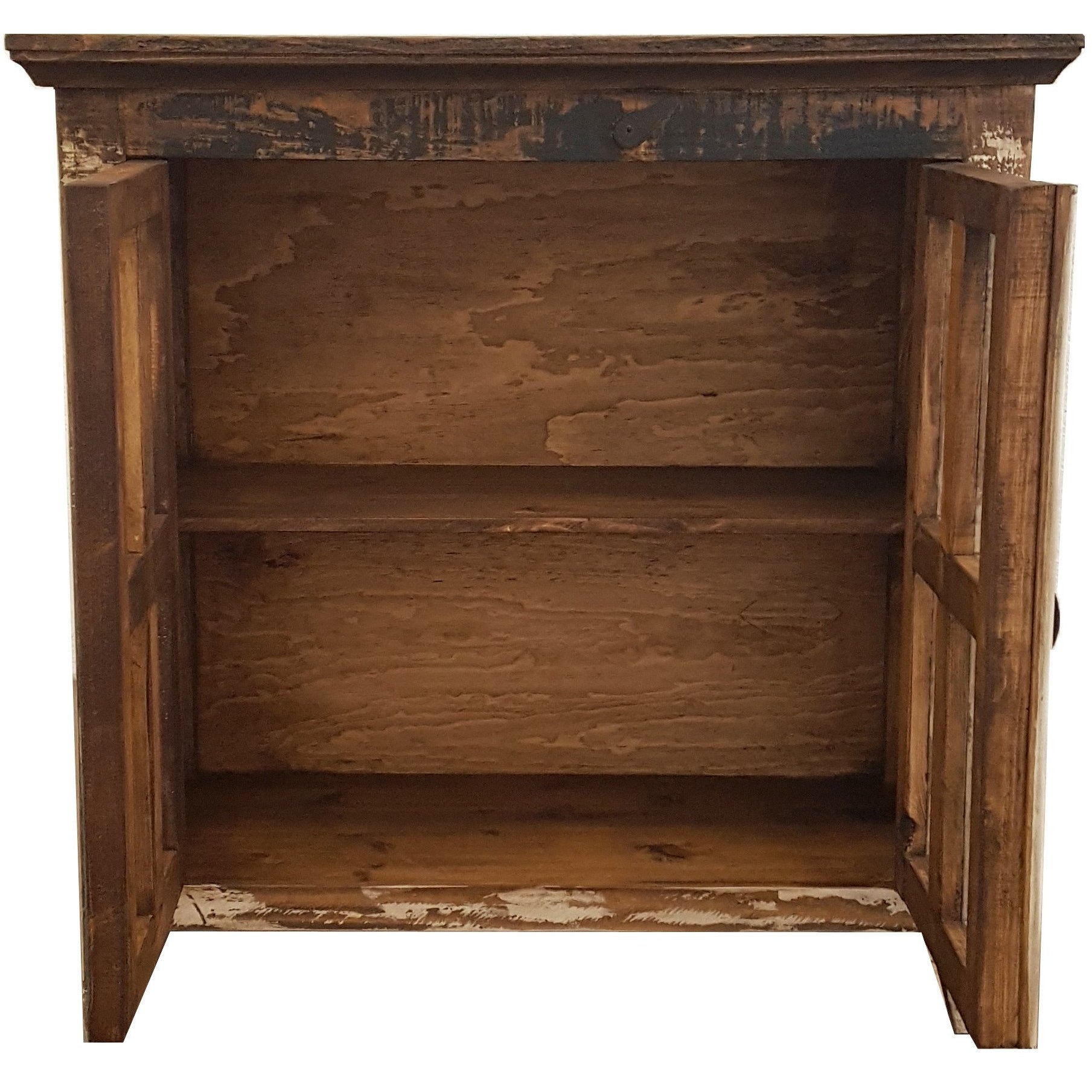 Handcrafted from solid wood, each cabinet is meticulously finished in an antique style to evoke a vintage aesthetic. The piece is painted and treated with a dark tone wax for lasting durability and a distinctive look. Discover high-quality craftsmanship and rustic charm in every detail of this curated cabinet.
