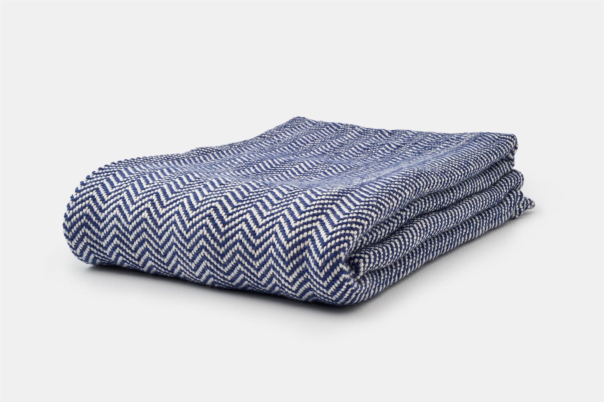 Our super soft throw has a Chevron pattern and is made from 100% USA Climate Beneficial wool.