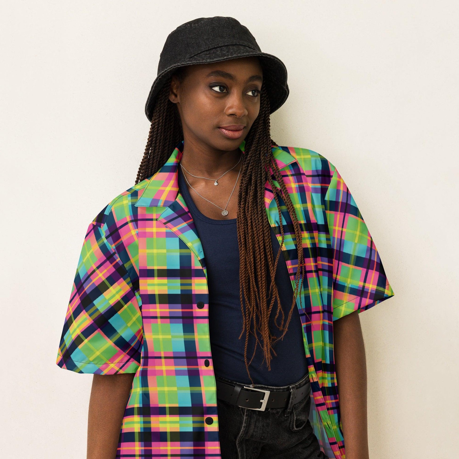 Pair this Custom Plaid Button Shirt with your favorite jeans or shorts, and get ready to turn heads at your next festival or rave. Embrace the vibrant energy of the EDM scene and let your style shine through!