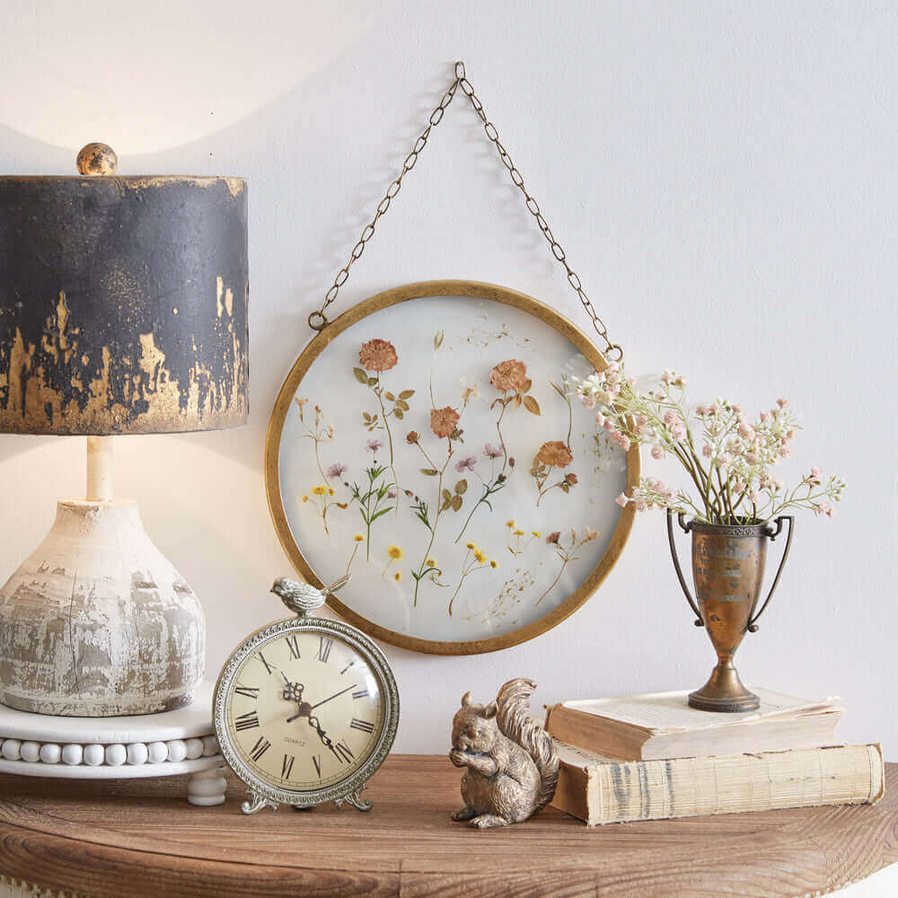Dried Flowers Botanical Wall Decor in Round Gold Frame