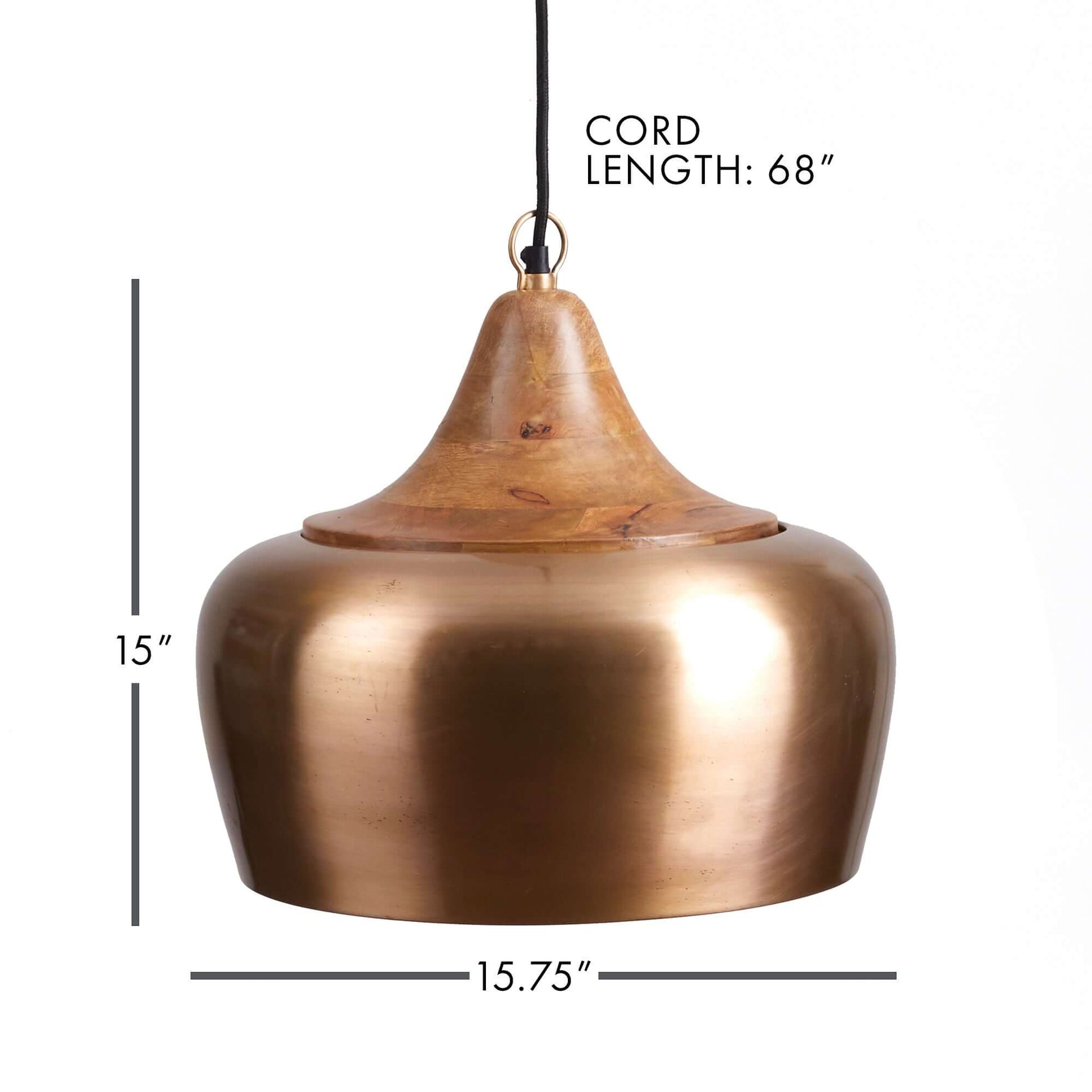 Warm, nostalgic, and effortlessly elegant, this farmhouse wood and satin brass pendant light is a luminous nod to heritage design with a modern twist. The smooth curve of the satin brass shade glows with a soft, golden sheen—evocative of candlelit evenings and old-world warmth—while the natural wood top adds an organic touch that feels grounded and timeless. Together, they create a harmonious pairing that elevates any space with character and grace.