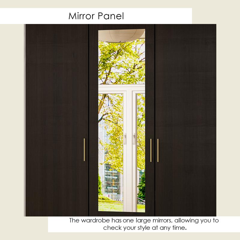 【Wardrobe with Mirror】 - This white wardrobe with mirror is modern design, it combines white board with gold handles to show elegant charm, the fixed mirror offers you a comprehensive view of your look. This wardrobe matches well with many different house decors