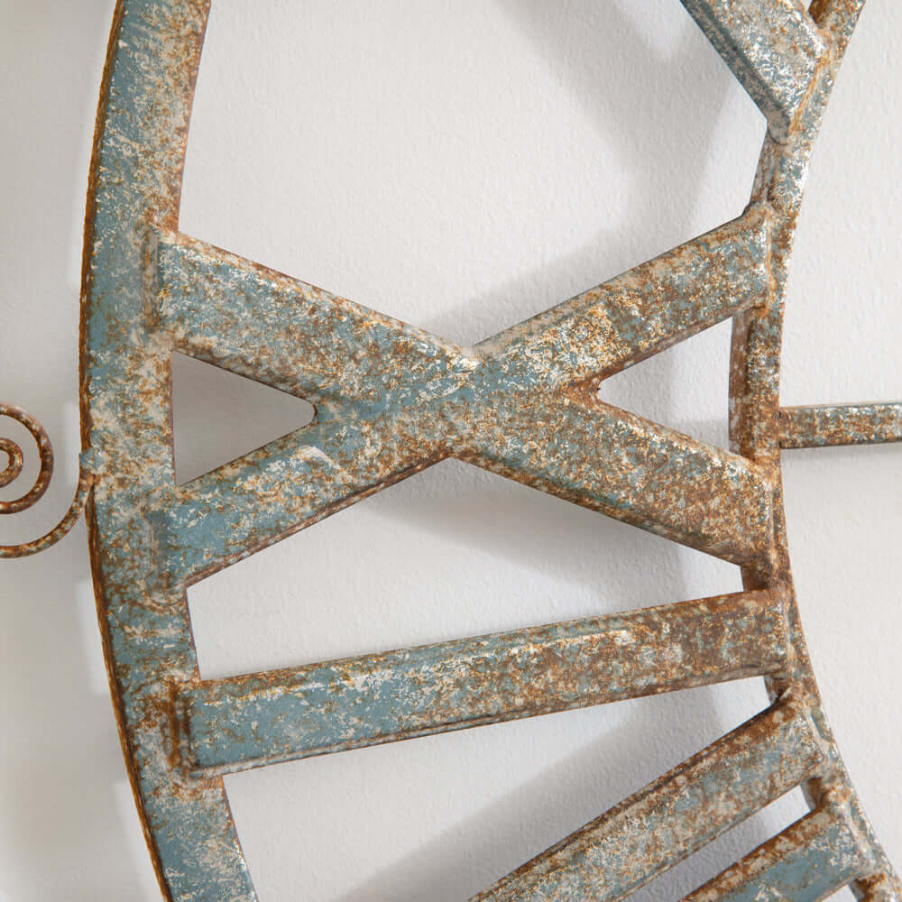 In spaces where time seems to slow, the distressed metal wall clock brings both utility and beauty, marking each hour with grace. Its palette of weathered blues and soft metallics pairs perfectly with linen curtains, painted wood furniture, and the soft glow of candlelight—ideal for those who treasure old-world charm and meaningful details.