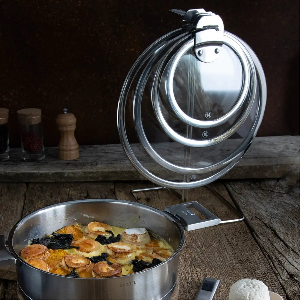 For easy and smart storage of Strate®flat glass lids and splatter screens up to 13” in diameter.