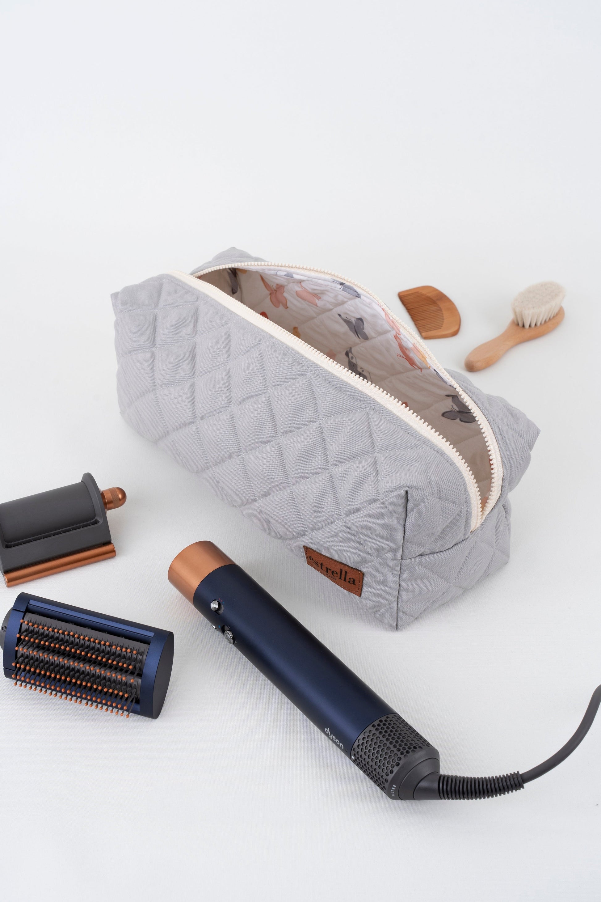 Designed for style and convenience — this versatile bag doubles as a makeup pouch and a hair tool organizer, perfectly sized to fit all hair straightener models, including the Dyson Air wrap.
