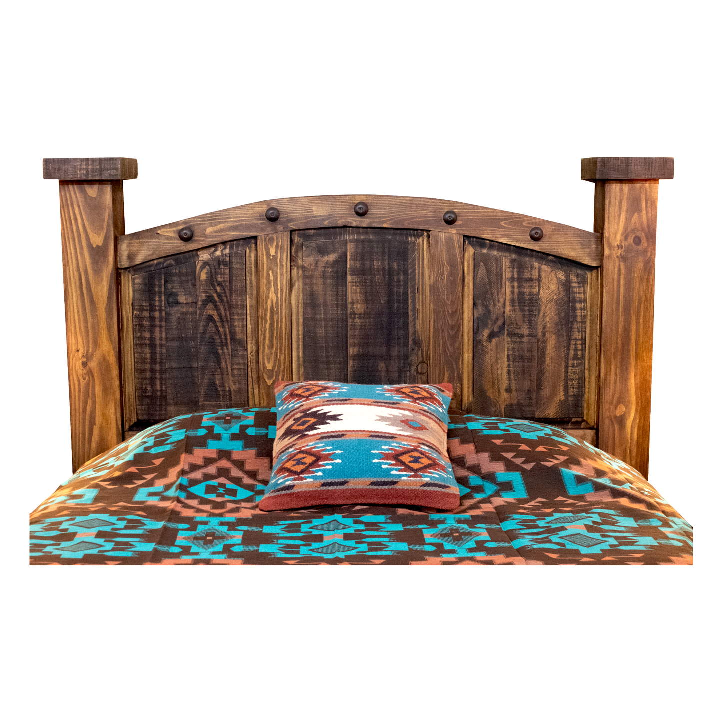 Adorned with traditional conchos meticulously placed along the headboard and footboard, this bed epitomizes southwestern and western style, making it a favorite among our discerning customers. Its classic design and attention to detail ensure it stands out as a centerpiece in any bedroom setting.