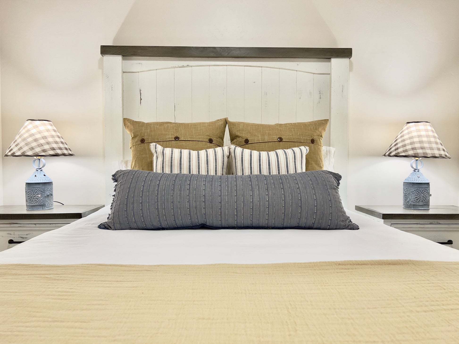 - Bed includes rails that run from headboard to footboard (box spring is needed for the mattress)