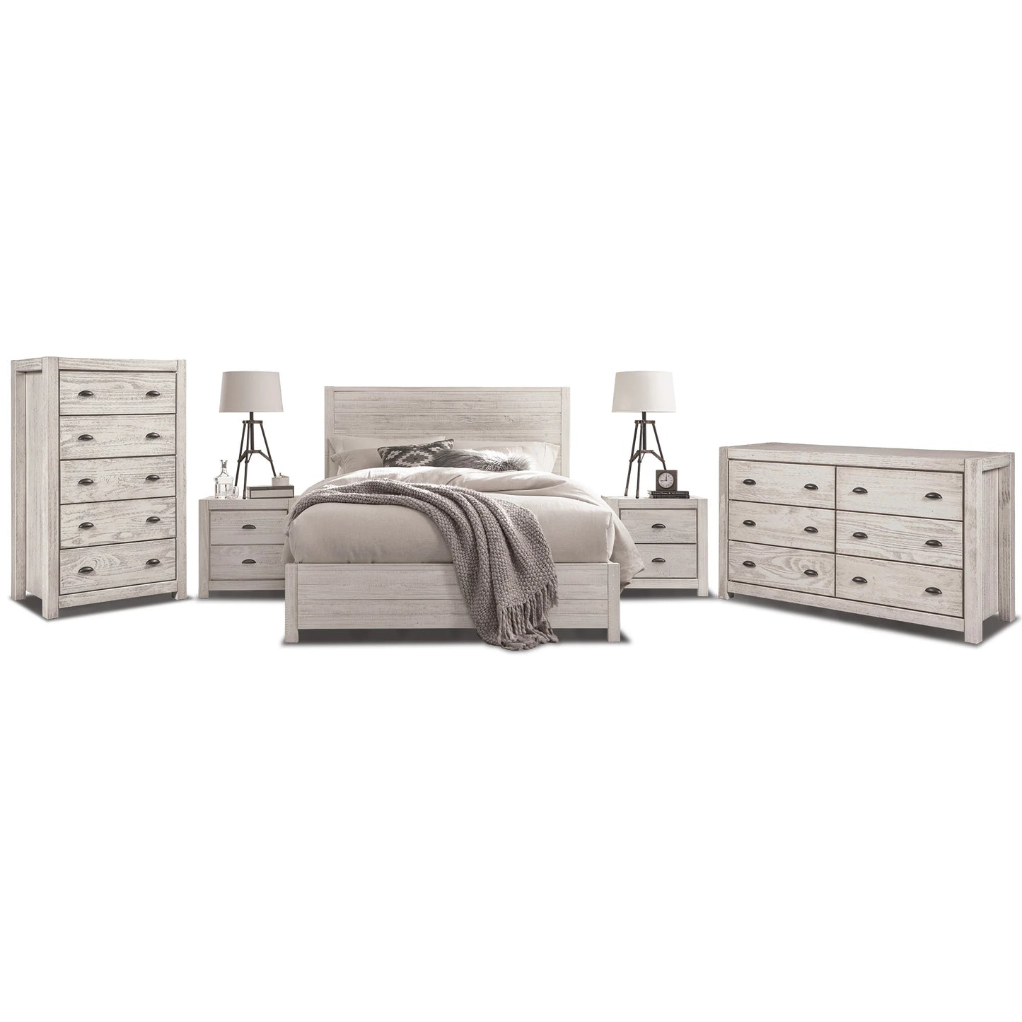 Transform your sleep sanctuary into a casual and sophisticated haven with the Montauk 5-piece bedroom set. Made of solid wood, this set includes a bed, 6-drawer dresser, 5-drawer chest, and two nightstands, offering ample storage space for all your essentials. This bundle is offered at a discounted price, making it an absolute steal. Indulge in the best selling Montauk bedroom collection and instantly elevate your bedroom decor game.