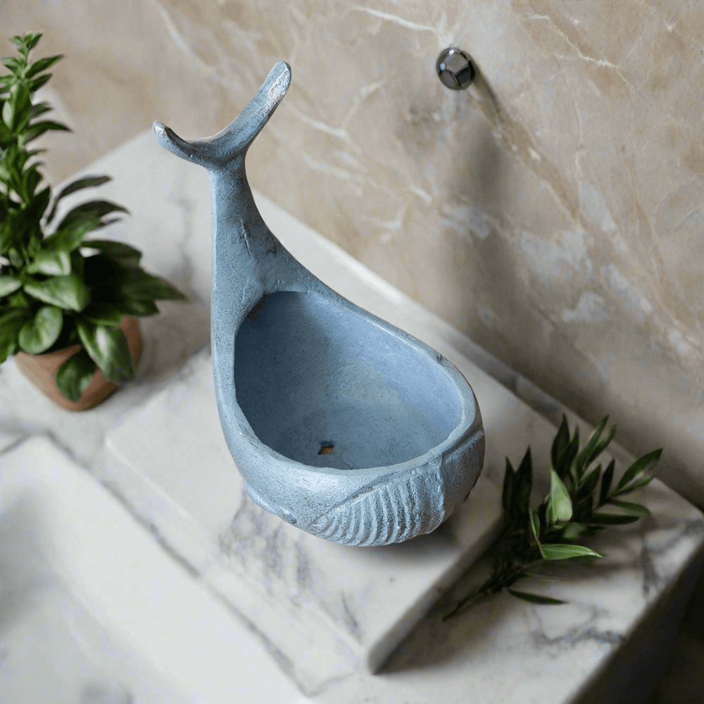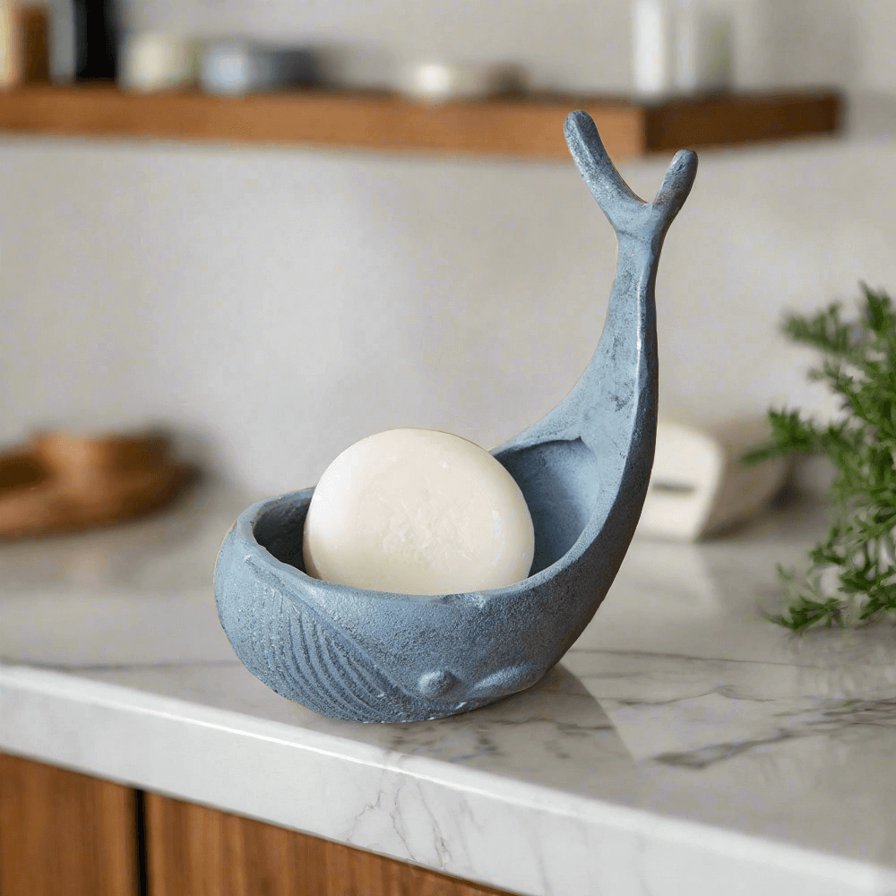 Our nautical whale-shaped soap dish makes for a delightful addition to any bathroom or kitchen. This charming soap dish brings old-world nautical charm into your home, enhancing your coastal decor with its whimsical design and practical features.
