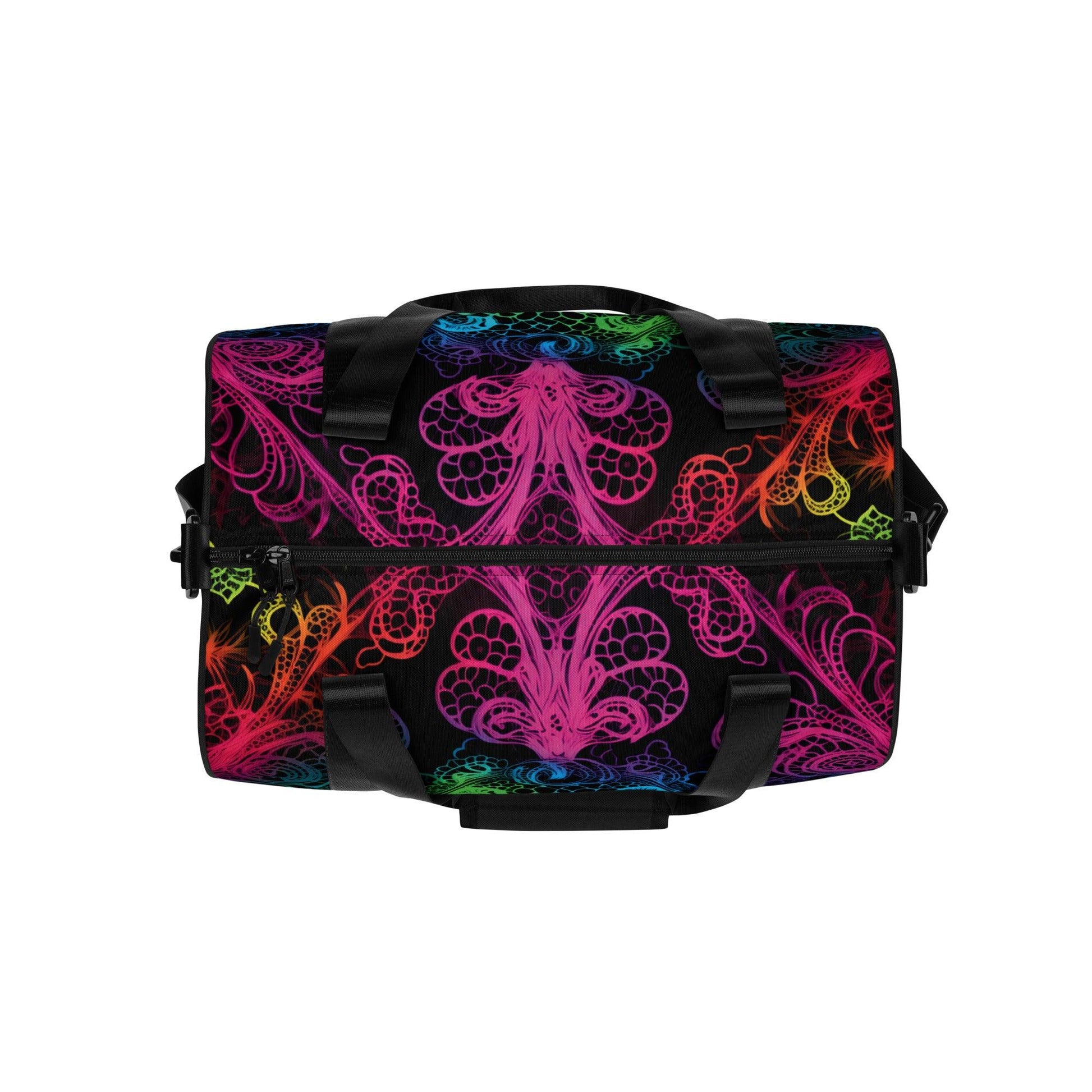 Durable Material: Crafted from 100% polyester with a fabric weight of 9 oz./yd² (305 g/m²), the Neon Lace Festie Travel Bag is built to endure the rigors of your adventures. Whether you’re dancing in the rain or trekking through the festival grounds, this durable bag has got your back.