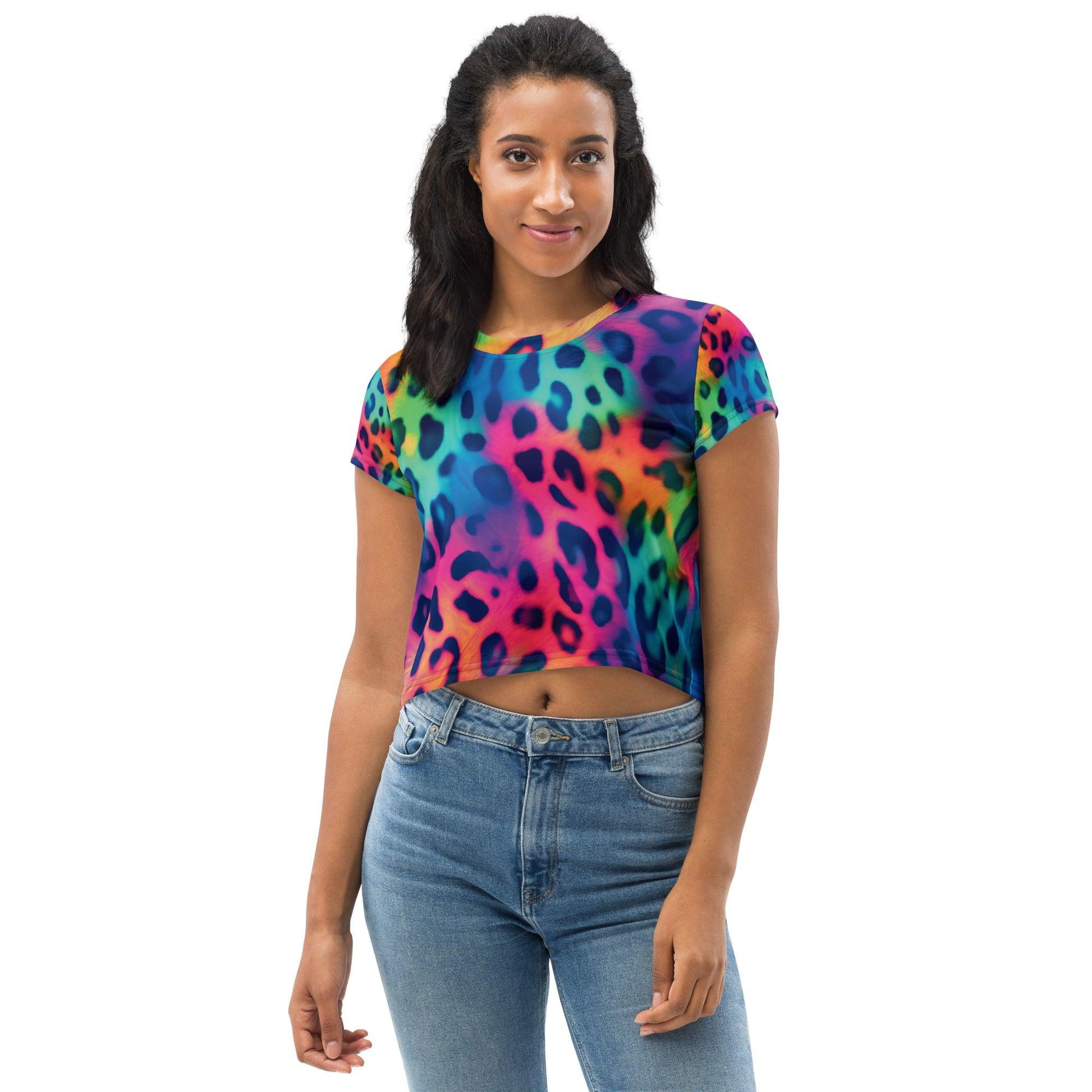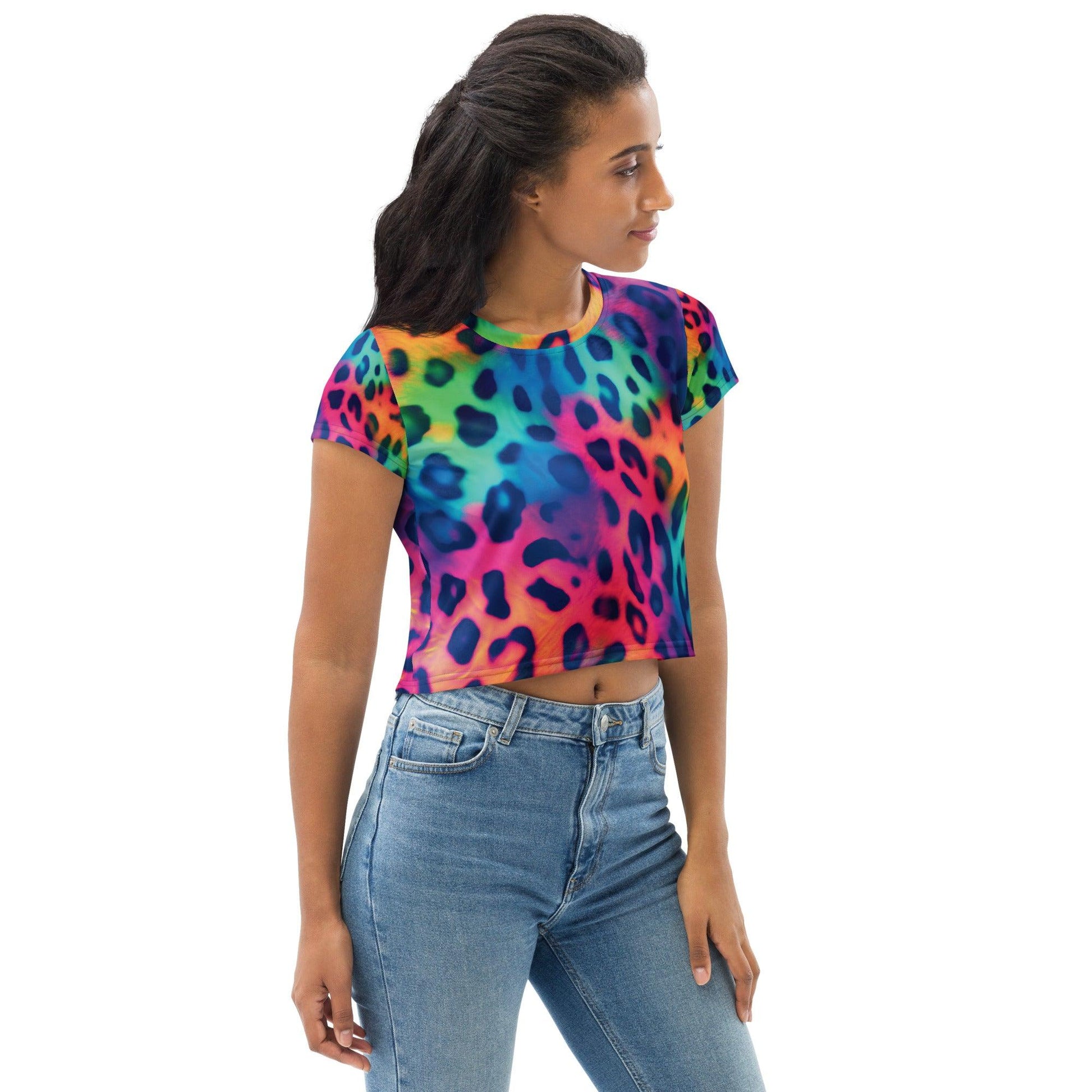 Dare to stand out with our unique design that encapsulates psychedelic, trippy vibes—perfect for those who live for the thrill of music festivals and the electric energy of raves. Whether you’re preparing for the festival circuit or looking to elevate your everyday style, our Neon Leopard Print Crop Tee is the ideal choice. Join the PLUR crew, embrace your individuality, and let the world see your vibrant style!