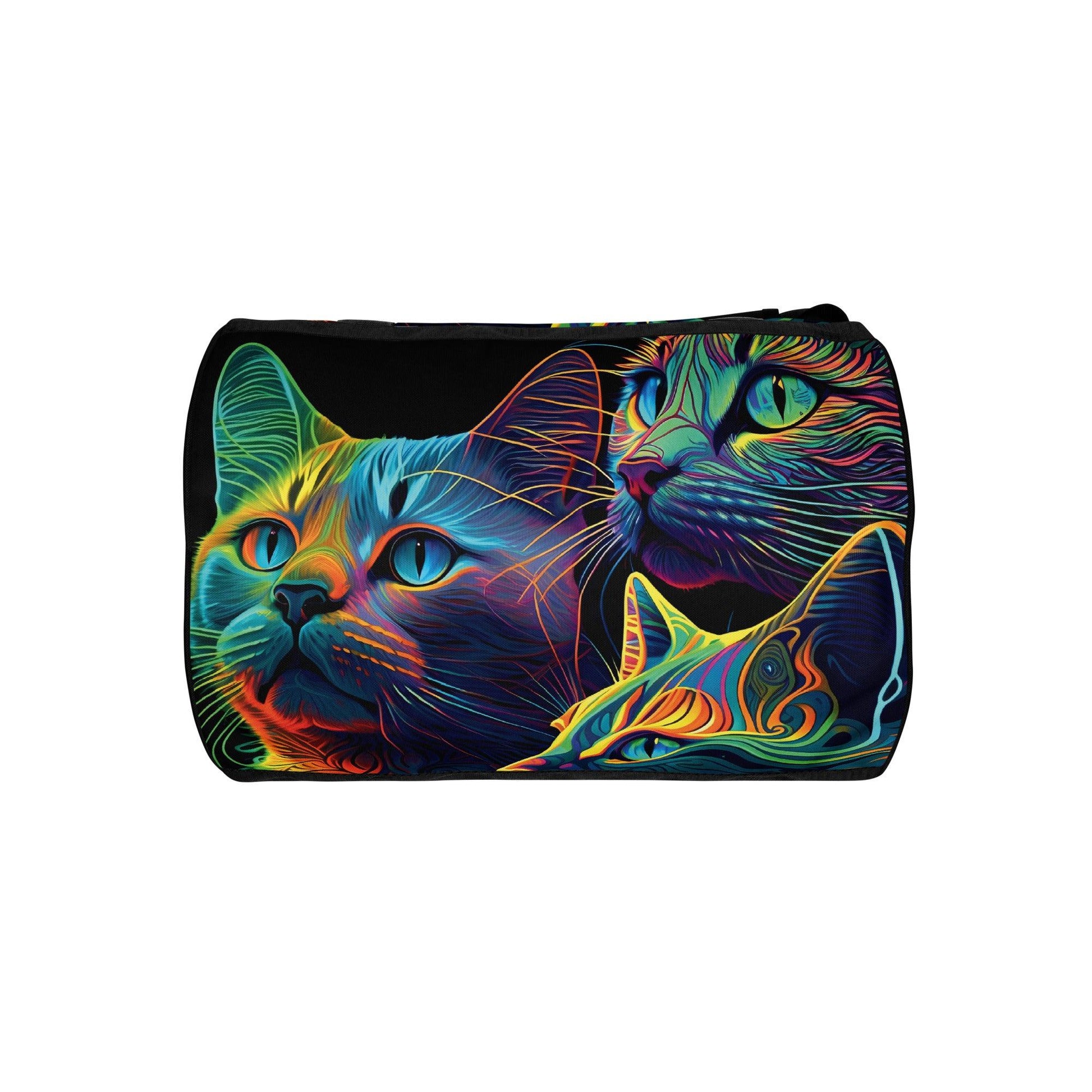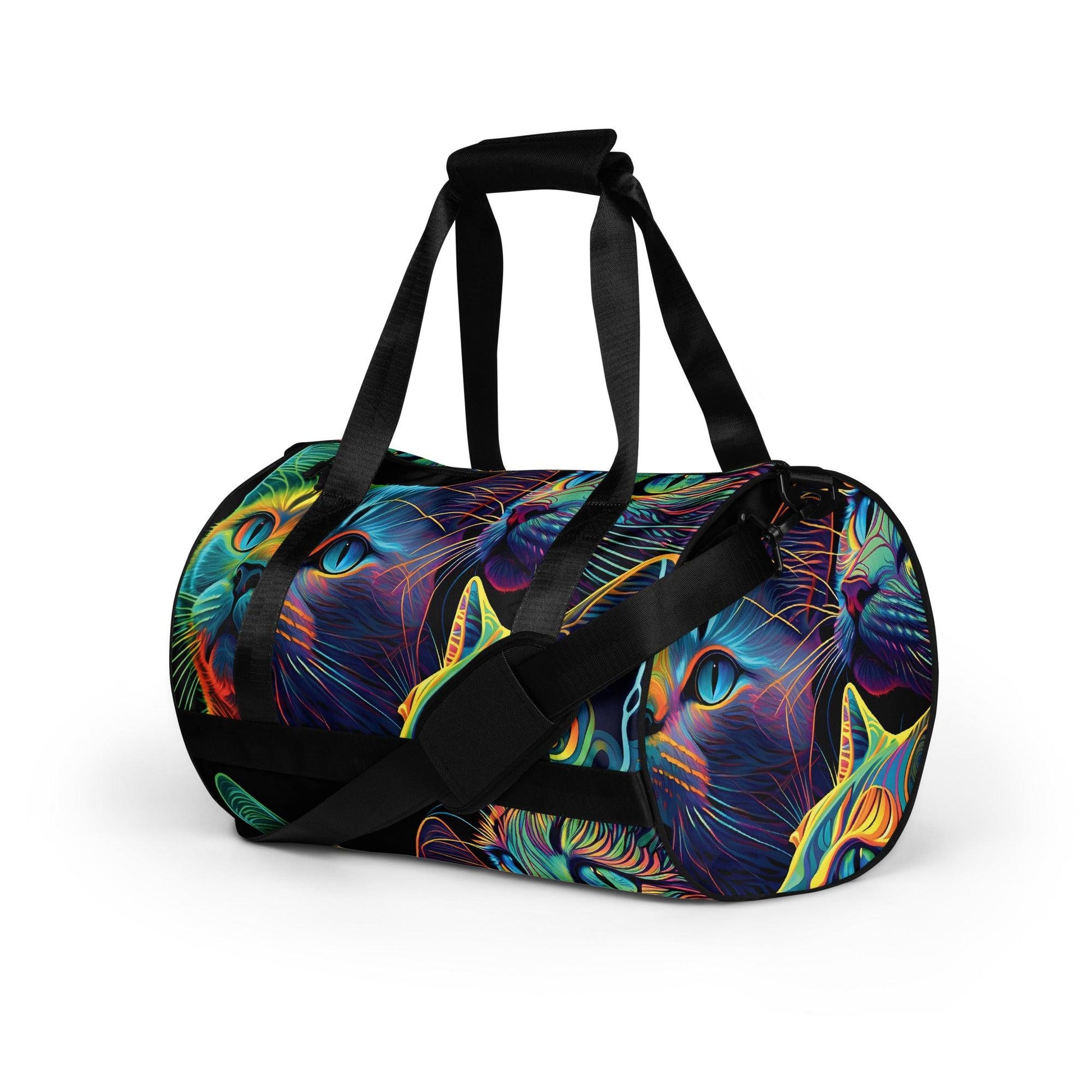 Eco-Friendly Production: Feel good about your purchase! Made on demand to reduce waste, the Neon Trippy Cat Festie Travel Bag embodies sustainability while celebrating the spirit of festival culture. You’re not just buying a bag; you’re supporting a lifestyle that values our planet.