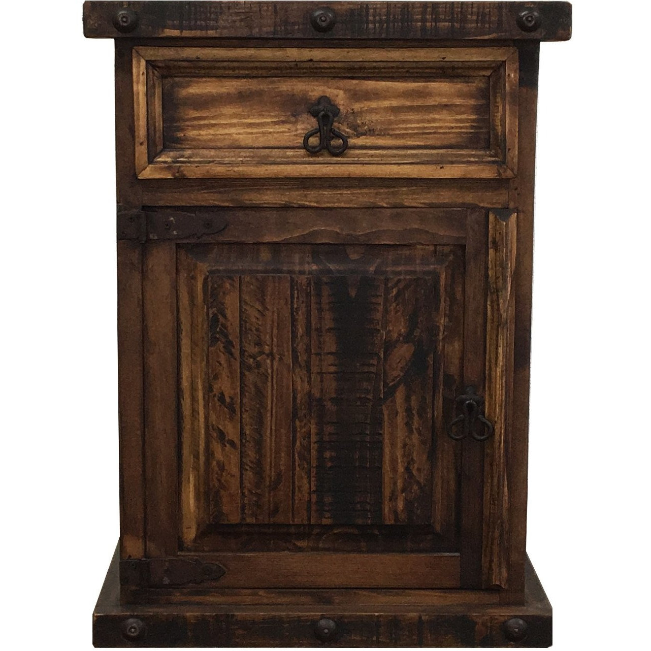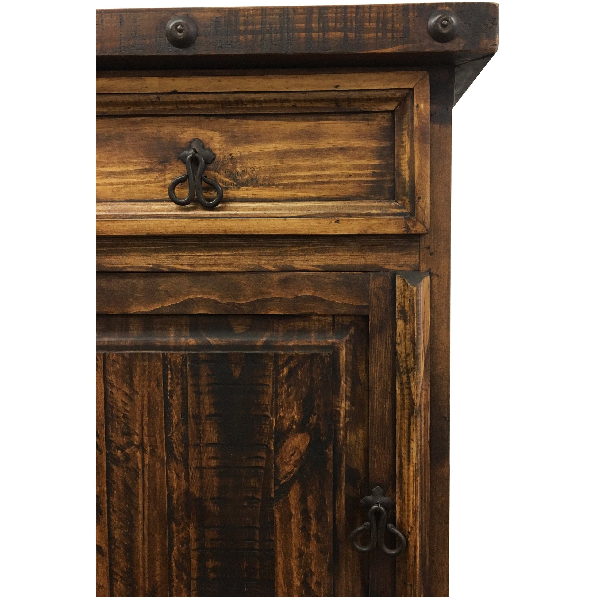 Designed with functionality in mind, the Oasis Large Nightstand features a convenient door at the bottom and a spacious drawer at the top, offering ample storage for your bedside essentials. Adorned with classic conchos around the top and bottom, it exudes traditional Southwest flair and craftsmanship.