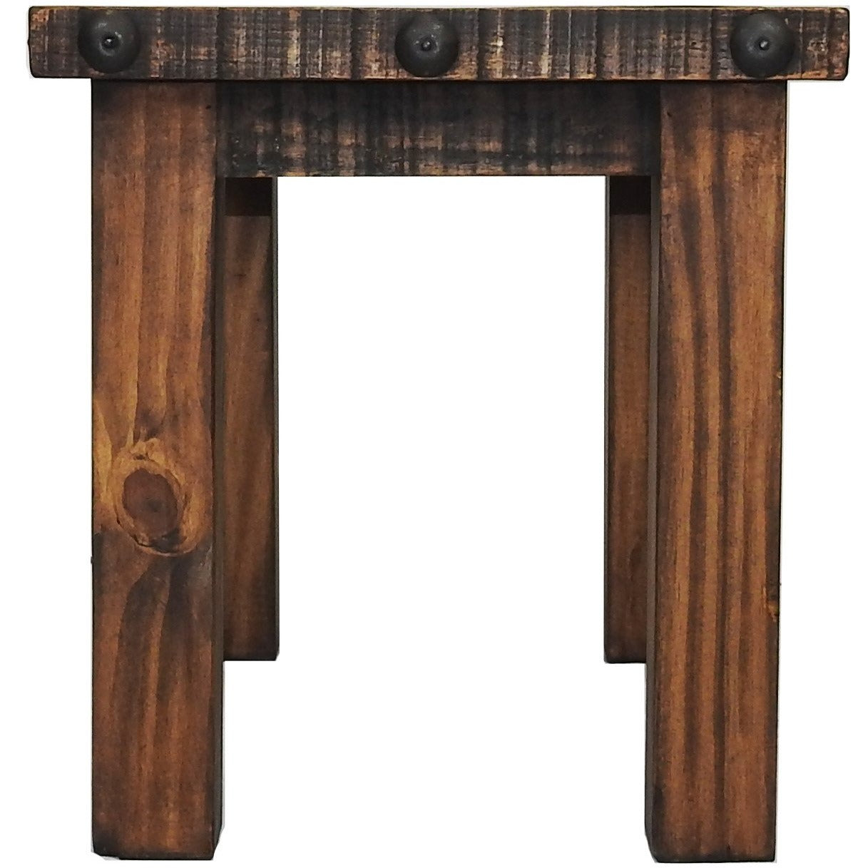Introducing the Oasis Rustic End Table, a perfect blend of rustic charm and functionality for your living space. Crafted entirely from solid wood, this end table features a unique rustic top with uneven wood that's been expertly sanded smooth for a refined finish.