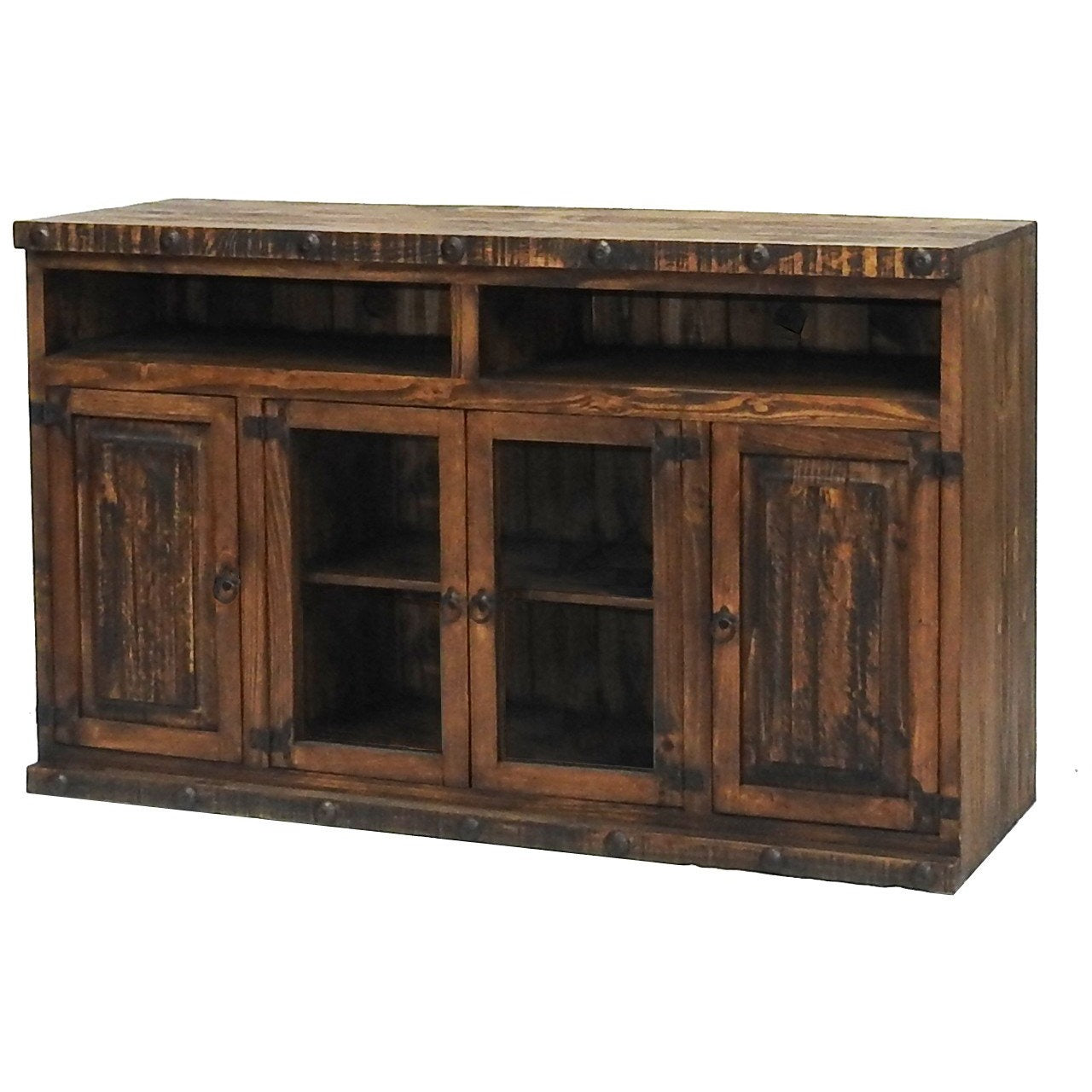 Introducing the Oasis San Luis Rustic TV Stand, a spacious and stylish addition to your entertainment area. This 60-inch TV stand, recommended for TVs up to 65 inches, seamlessly blends functionality with rustic charm.