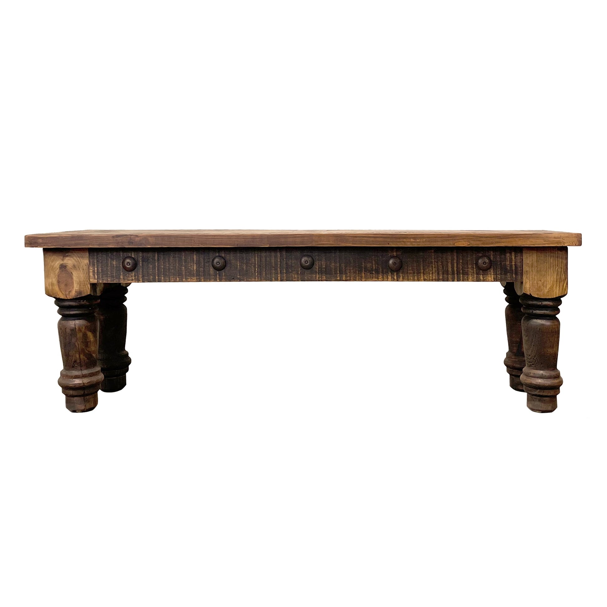 Enhance your rustic décor with the Oasis Wooden Rustic Bench from Rustics For Less. This backless bench features a sturdy wooden seat and thick turned legs, accented with charming conchos for a distinctive touch. Perfectly complementing the Oasis and Mansion beds, this versatile bench also pairs beautifully with the Oasis dining table or Rancho dining table. Place it in your hallway for additional seating or as an accent piece in any room.
