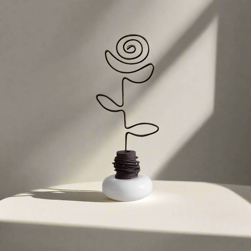 Topping the doorknob is a meticulously crafted wire rose, symbolizing grace and beauty. Hand-shaped from high-quality metal, the rose serves as the photo holder’s frame, bringing an air of romantic artistry to your display. The wire rose not only holds your photos but also enhances the overall vintage appeal, making this piece more than just a photo holder—it’s a conversation starter.