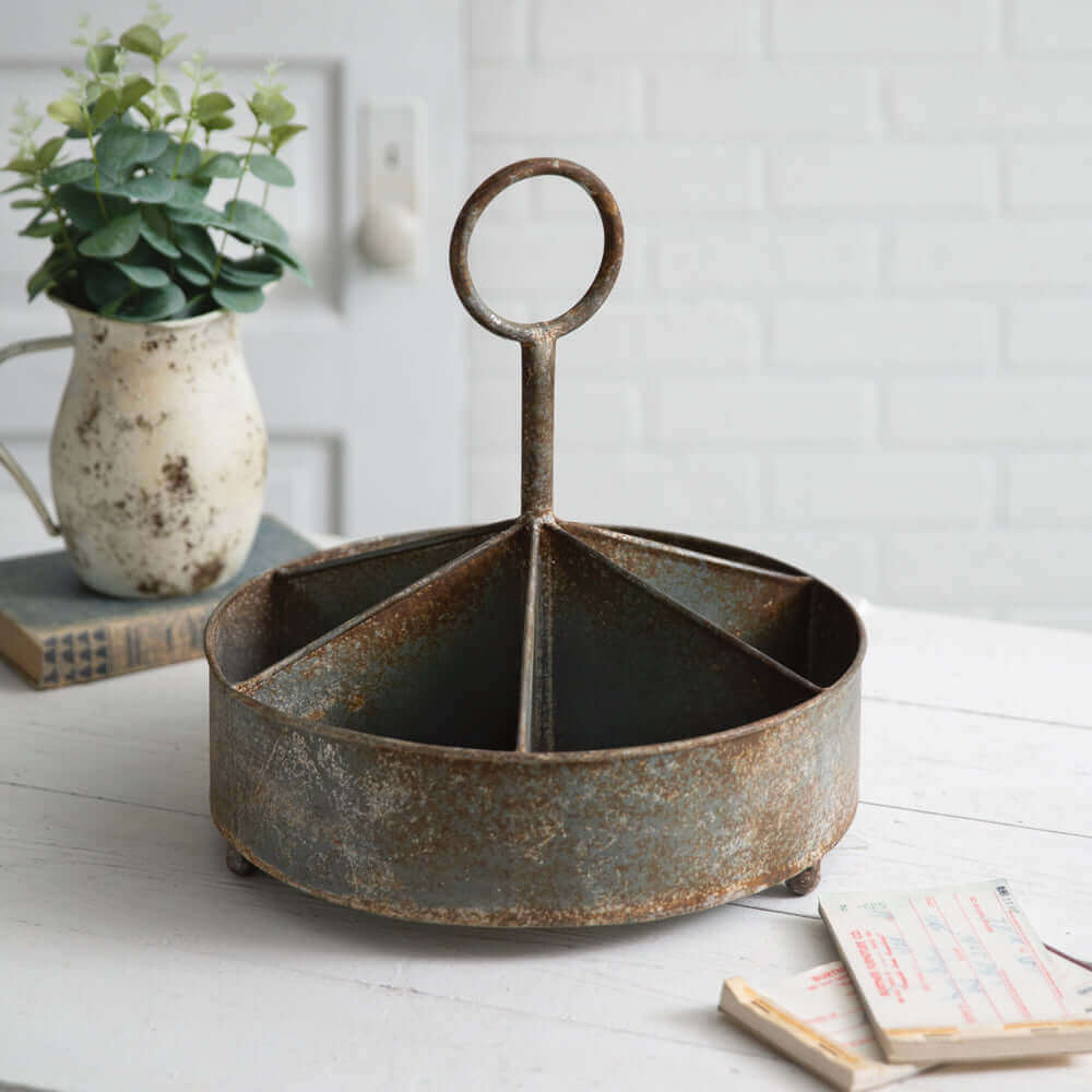 More than just a decorative piece, this metal caddy is highly functional and perfect for organizing various household items. Equipped with built-in dividers, it’s ideal for keeping items neatly separated and easy to find. Use it to store utensils, art supplies, tools, or small kitchen essentials—the dividers help create order out of clutter while maintaining a stylish appearance. It’s the perfect way to keep things organized while adding a rustic touch to your space.