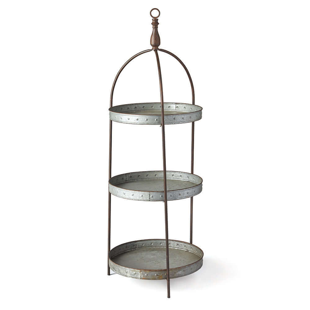 Round Rustic Three-Tier Galvanized Metal Display Stand