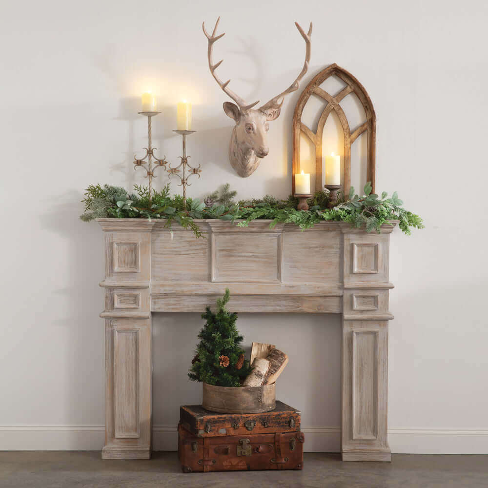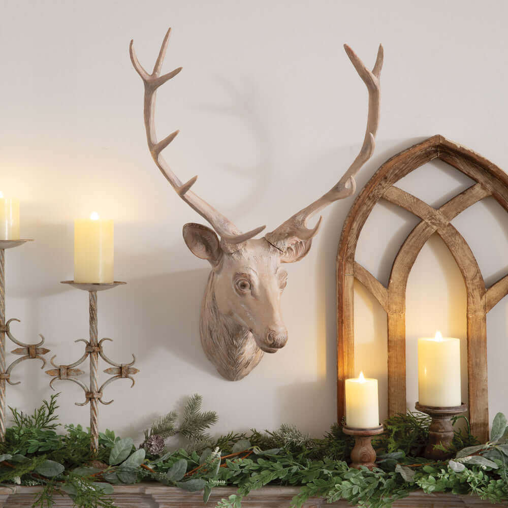 Rustic Deer Head Mount with Antlers in Whitewashed Finish