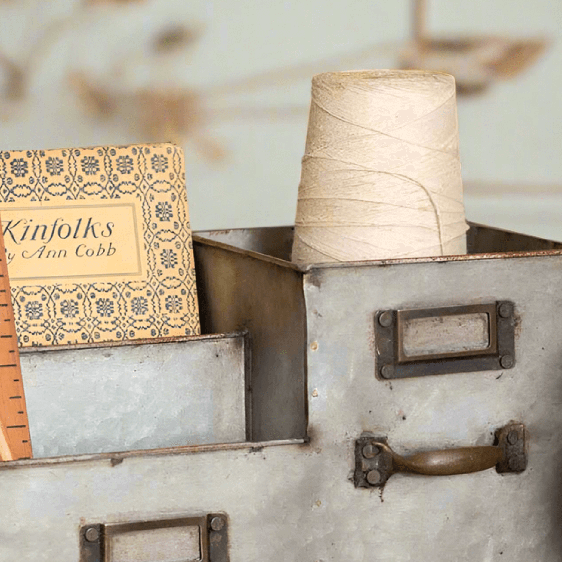 Crafted from durable galvanized metal, this organizer boasts an authentic rustic finish that instantly elevates the look of your workspace. The weathered texture gives it a vintage, timeless appeal, making it the perfect addition to homes with a country, industrial, or shabby chic aesthetic. The decorative metal handle adds a touch of elegance, enhancing its farmhouse charm.