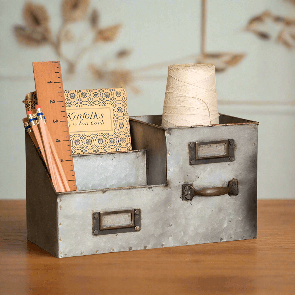 Our Rustic Galvanized Metal Desk Organizer, an essential storage solution for anyone looking to combine practicality with rustic charm. Whether you're updating your home office or looking for a creative solution for organizing your kids’ supplies, this desk organizer will fit seamlessly into farmhouse or vintage-inspired decor.