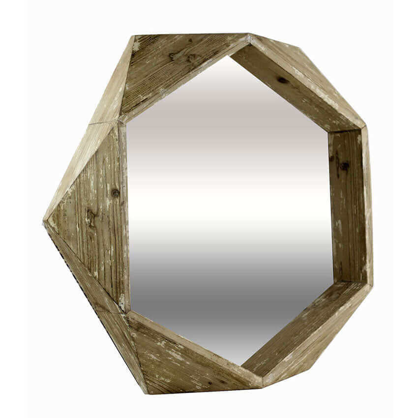 Rustic Hexagonal Wood Vintage Wall Mirror