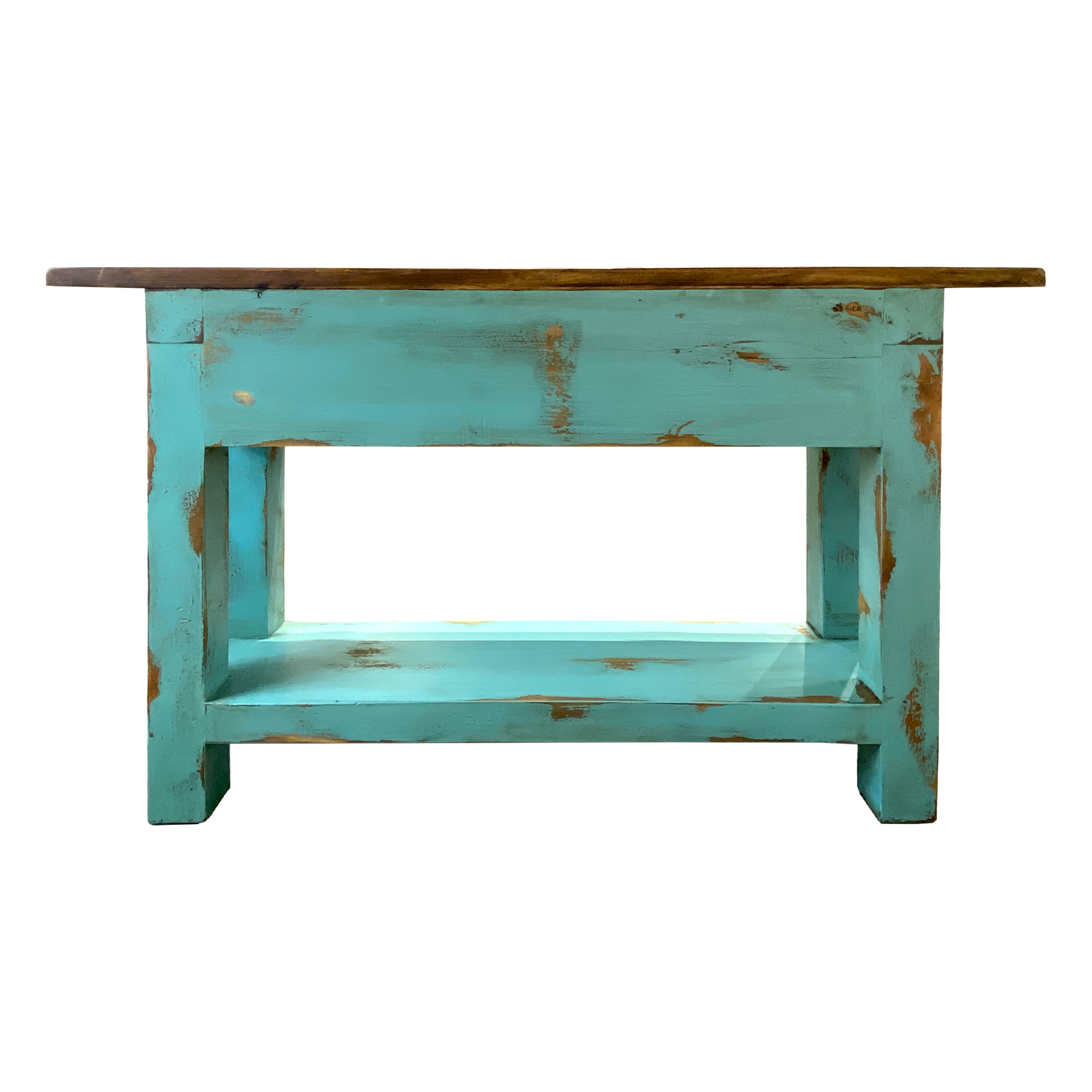 Transform your living room with the Rustic Sofa Table in Turquoise, where bold color meets rustic elegance for a standout piece in your home.
