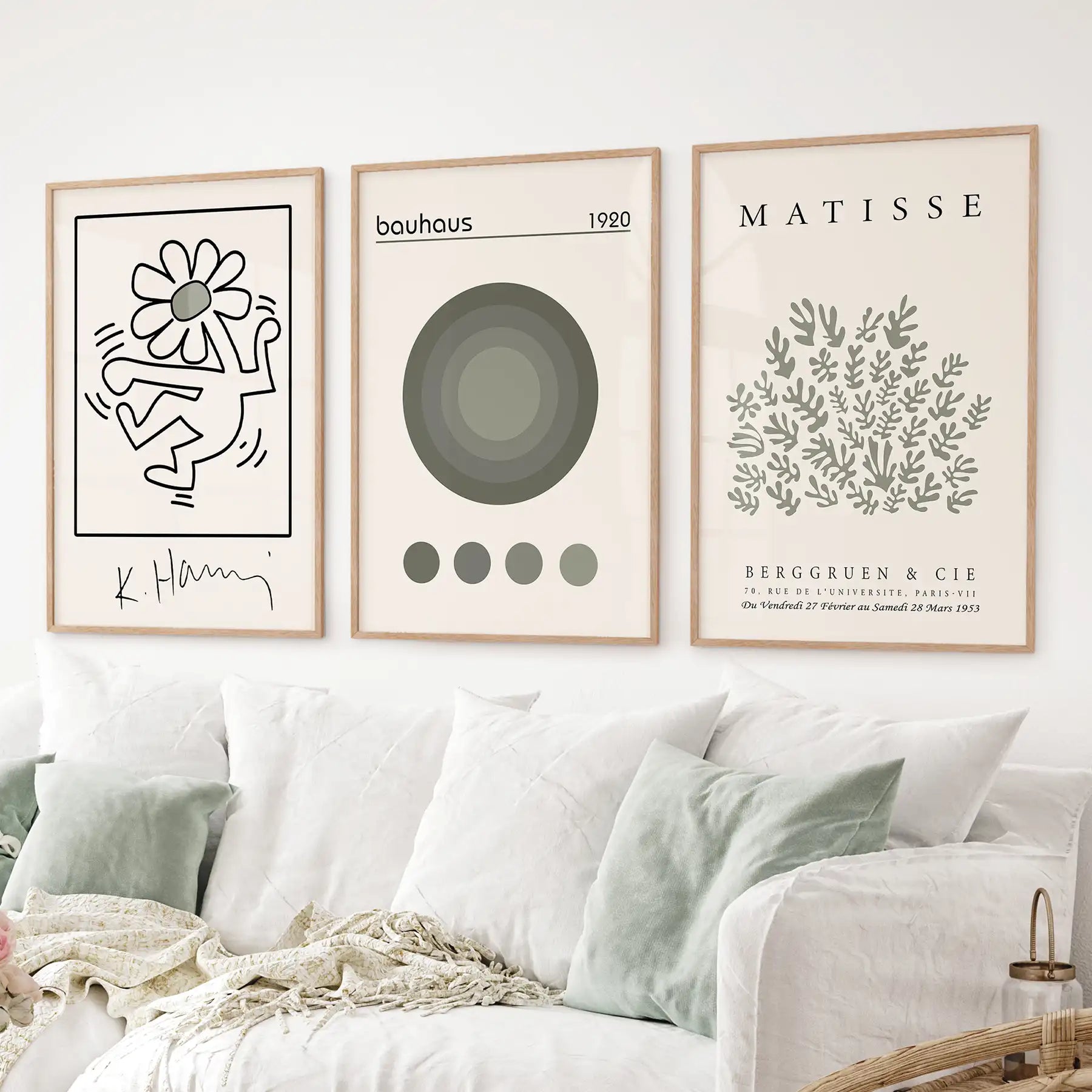 Sage Green Henri Matisse Botanical Art. Bauhaus Poster Set
