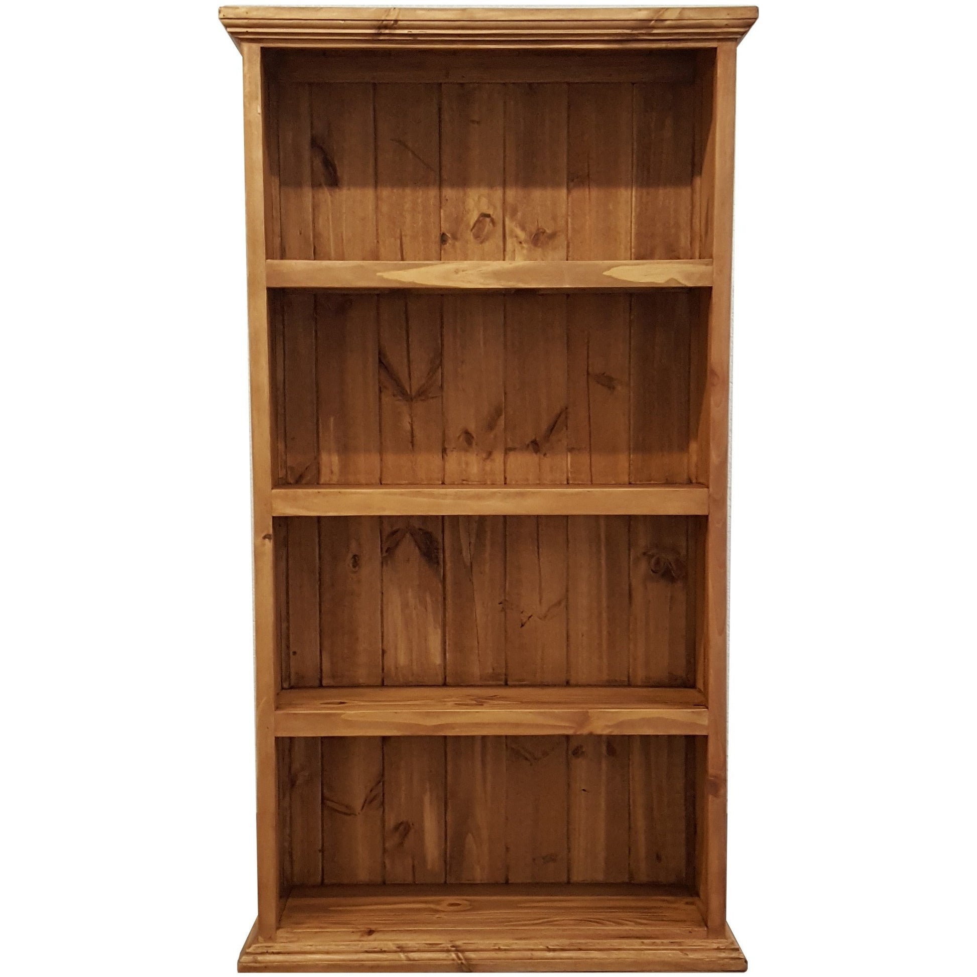Organize your space with the Santa Rita Rustic Bookcase, a compact yet functional piece designed for rustic charm and practicality. Crafted from solid pine wood and finished in a rich medium brown tone wax, this small bookshelf offers four spacious compartments for books, décor, or accessories.