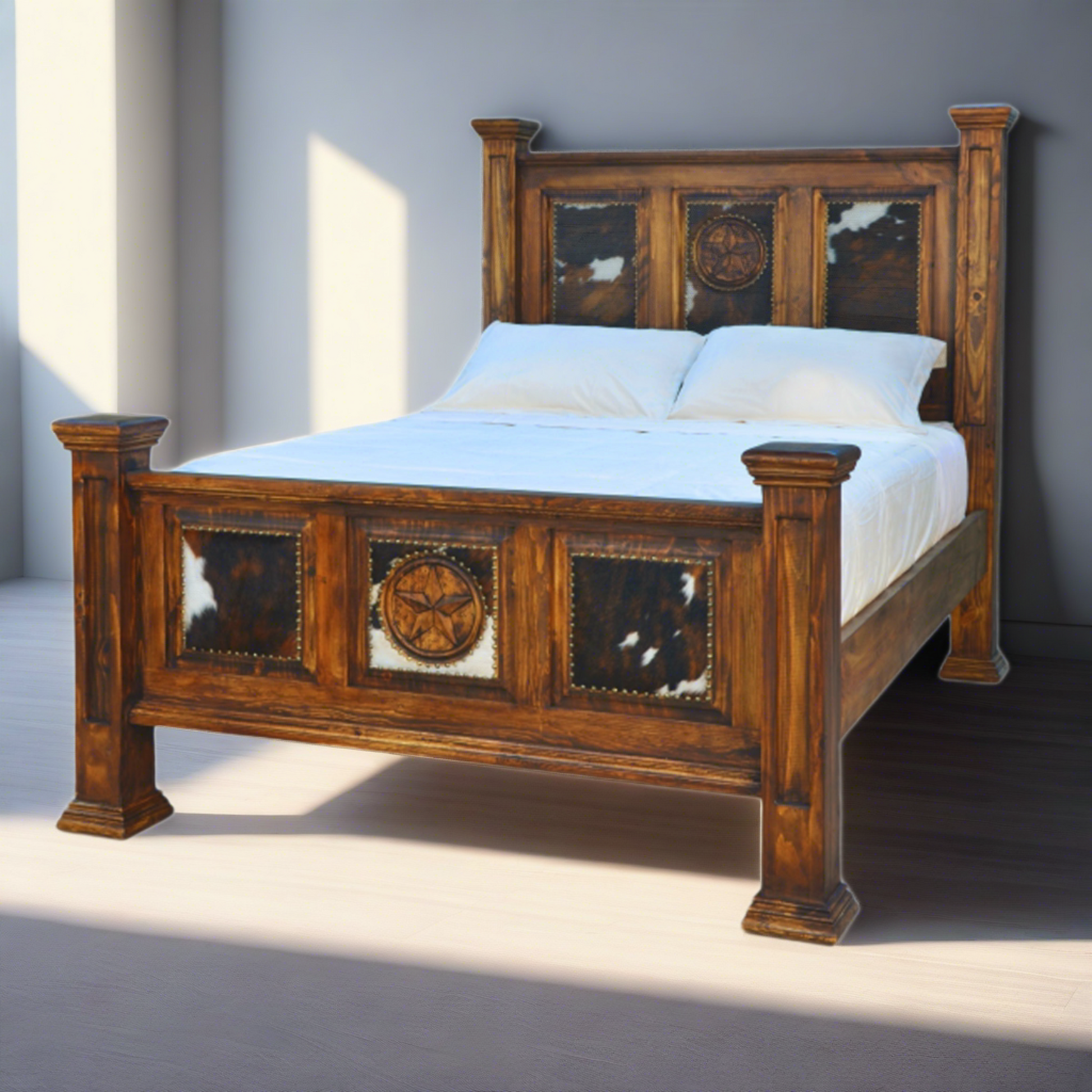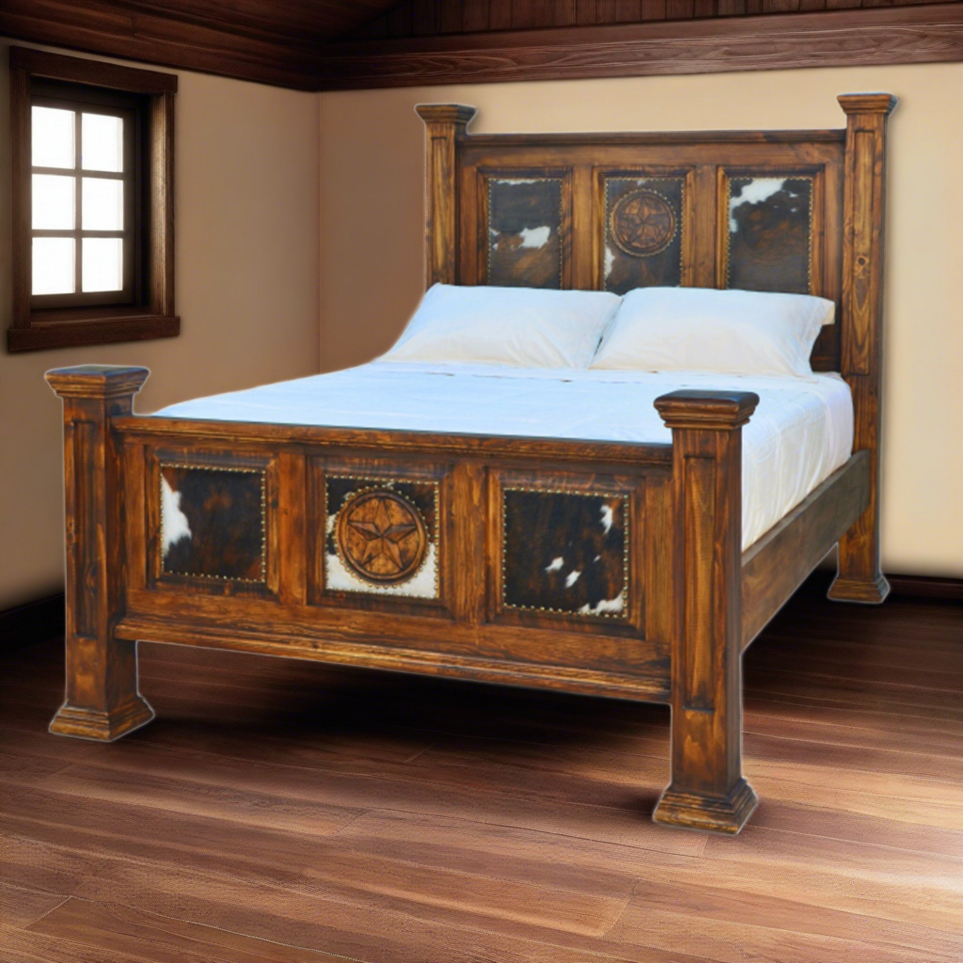 Santa Rita Rustic Bed with Cowhide in Dark Wax