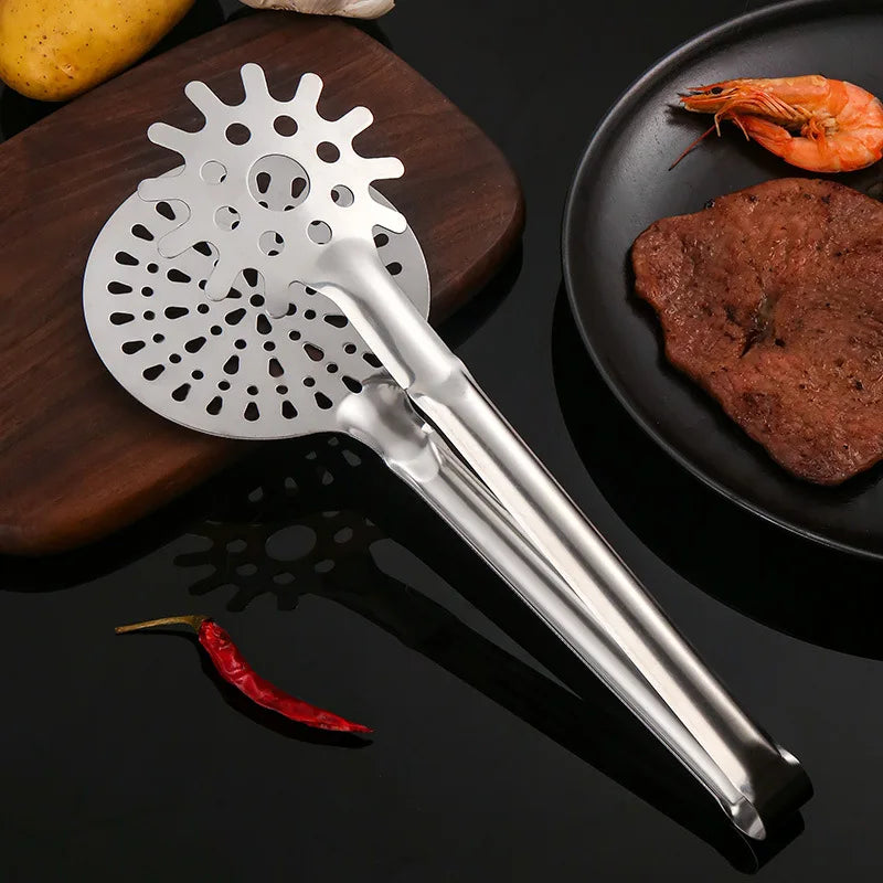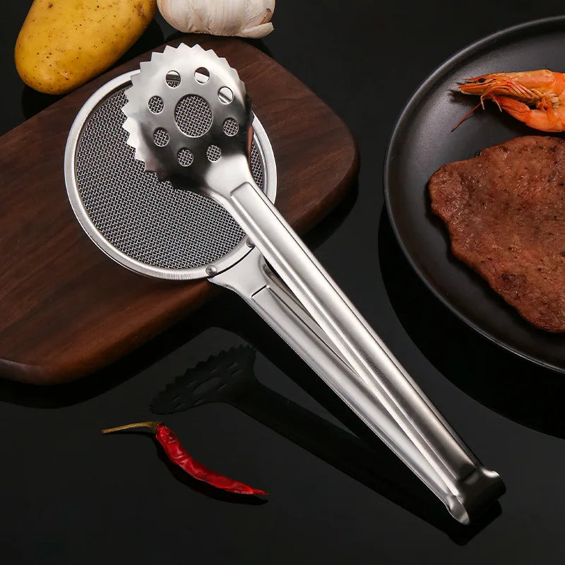 Introducing our premium Stainless Steel Food Tongs Oil Filter Strainer Clips, the ultimate kitchen tool for every cooking enthusiast. Crafted from high-quality stainless steel, these tongs are designed for durability and long-lasting use, ensuring they withstand the rigors of daily cooking. Perfect for home kitchens, outdoor barbecues, and travel adventures, these versatile tongs make cooking a breeze. The integrated oil filter strainer allows you to easily separate oil from food, promoting healthier meals. With an ergonomic design, these tongs provide a comfortable grip, making them easy to use for flipping, serving, and straining. Their compact size makes them ideal for travel, fitting effortlessly into any kitchen drawer or picnic basket. Whether you're grilling, frying, or serving salads, these stainless steel tongs are your go-to tool. Elevate your cooking experience with our Stainless Steel Food Tongs Oil Filter Strainer Clips, combining quality, functionality, and convenience in one essential kitchen accessory.