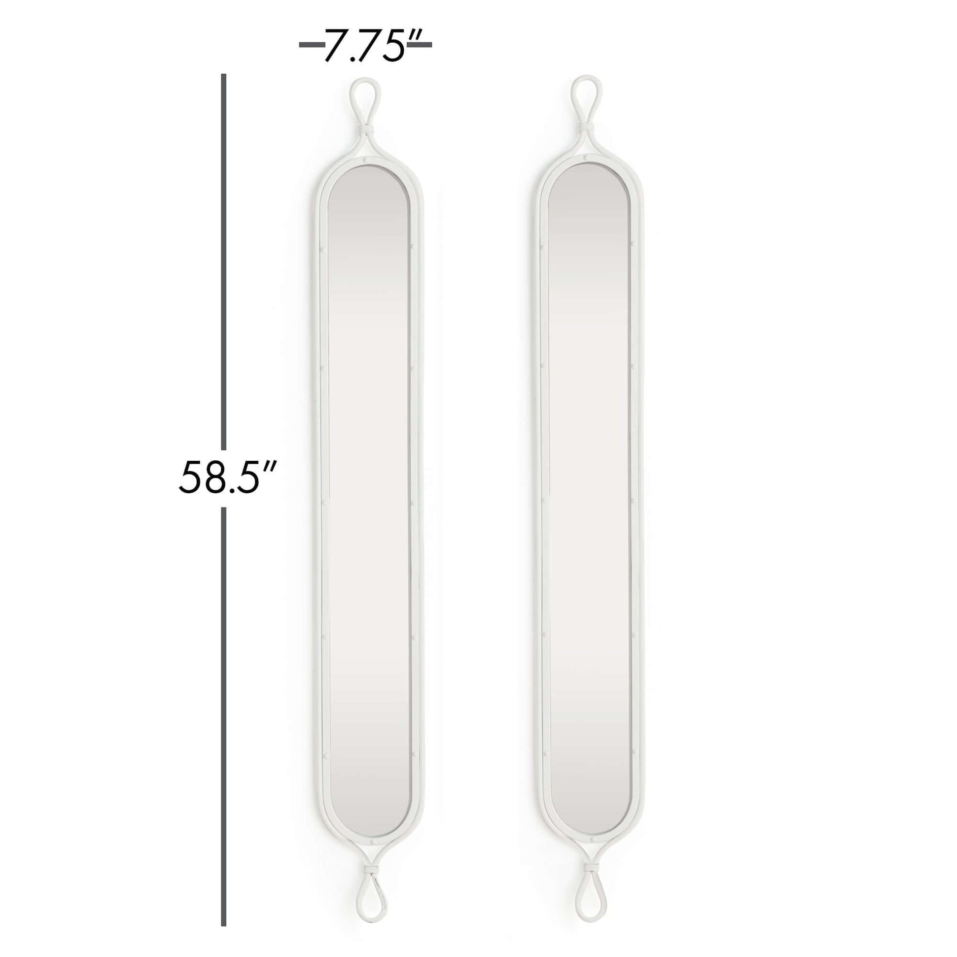 Delicately framed in matte white metal, these mirrors feel light and airy, yet rooted in the craftsmanship of vintage décor. The subtle looped detailing at both ends adds a touch of ornamental character, while the tall, slender form makes them ideal for smaller areas in need of vertical visual interest. Whether displayed in a narrow hallway, a quaint powder room, or flanking a vanity, this tall white mirrors with vintage French design set is a charming solution for compact or intimate spaces.