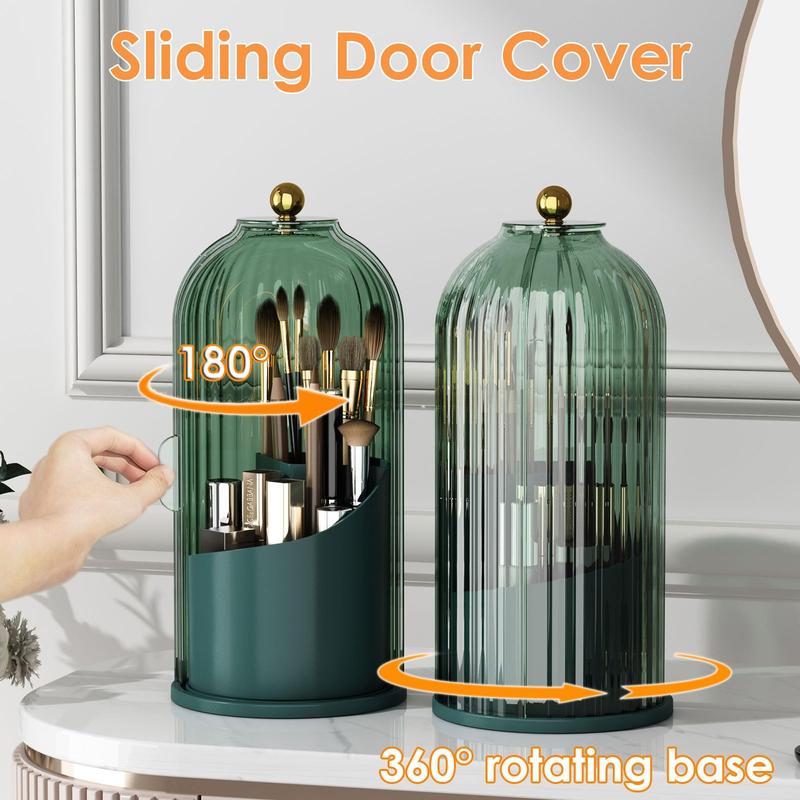 The toothbrush holder features a 180° sliding lid, lid can be smoothly closed and opened to prevent dirt and water from staining the toothbrush. The inside of the toothbrush holder can be rotated 360° for easy access to your toothbrush, toothpaste and other items from any angle.
