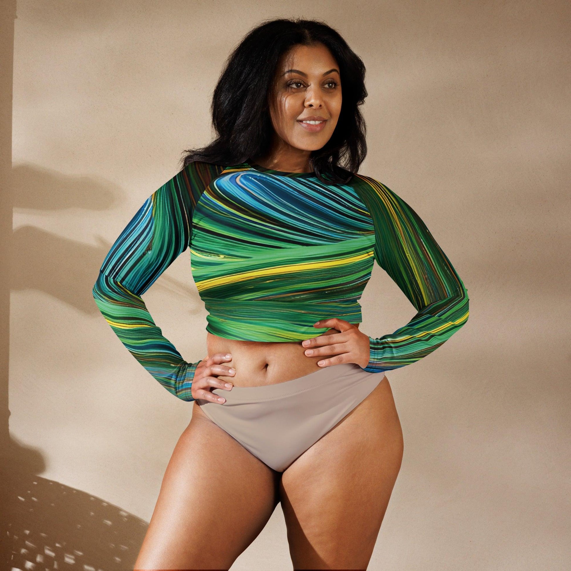 Trippy Abstract Long-Sleeve Crop Top for EDM Festivals