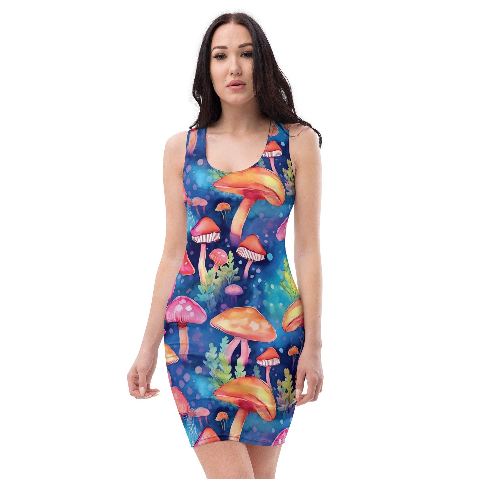 Vibrant Mushroom Bodycon Dress for Raves & Festivals