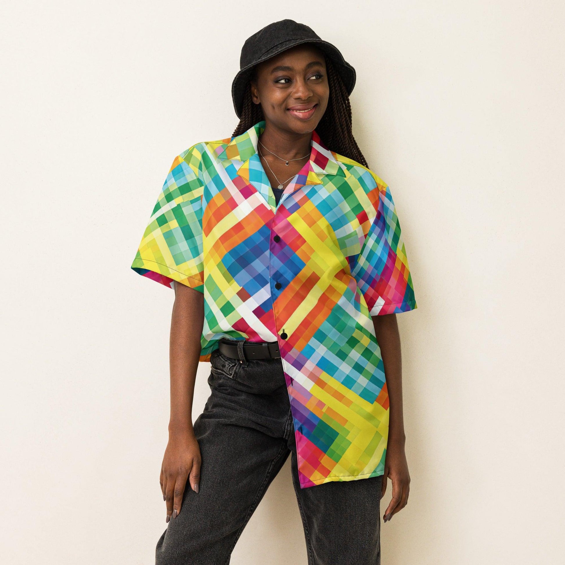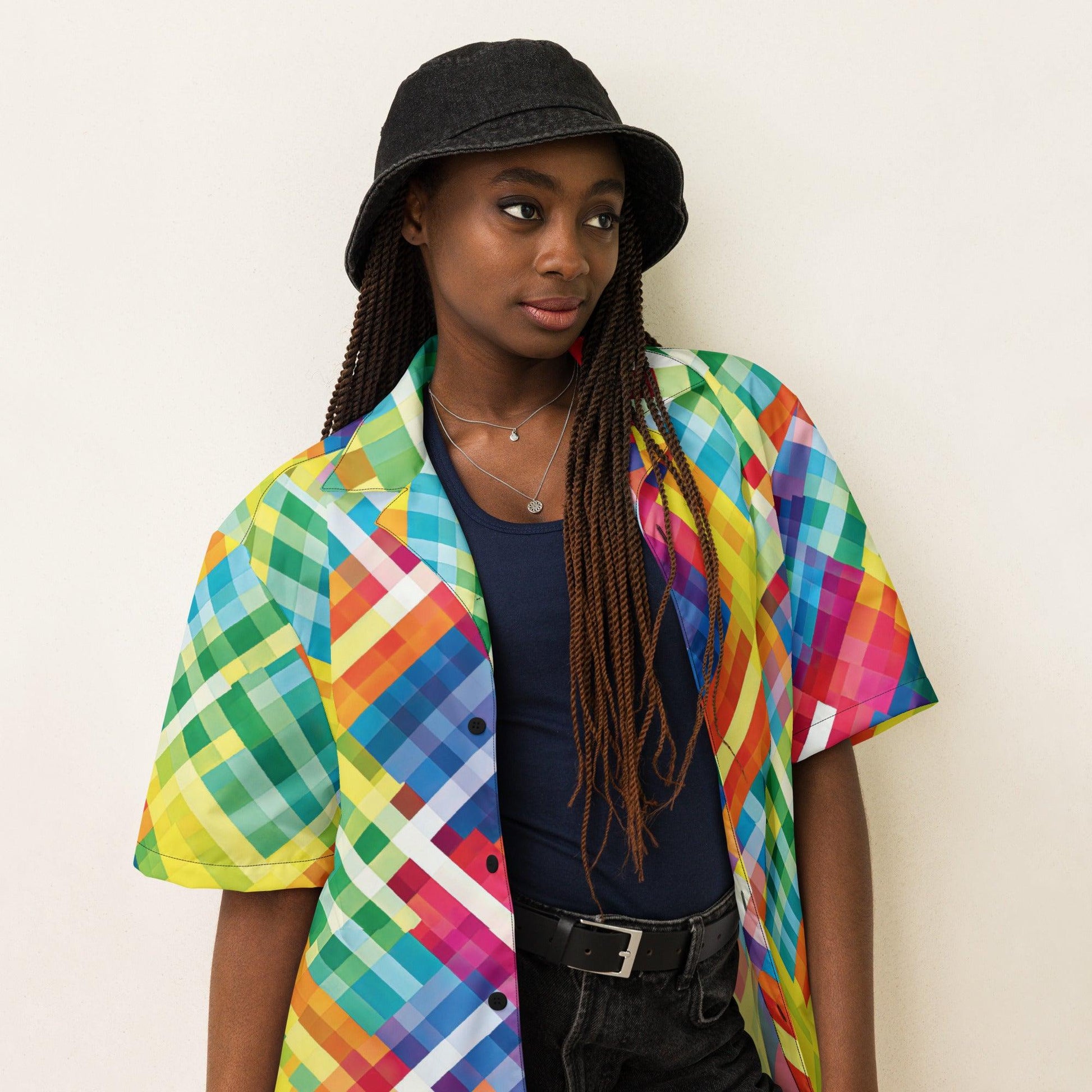 Step into a world of color and energy with our Vibrant Neon Plaid Button-Up Shirt, designed for those who love to express their individuality through fashion. Picture this: a lively music festival, beats pulsing through the air, and you standing out like a beacon of creativity in our eye-catching shirt. This isn’t just clothing; it’s a lifestyle statement that resonates with the vibrant festival culture.